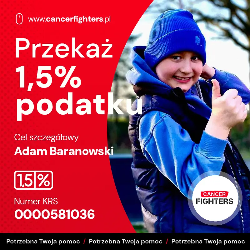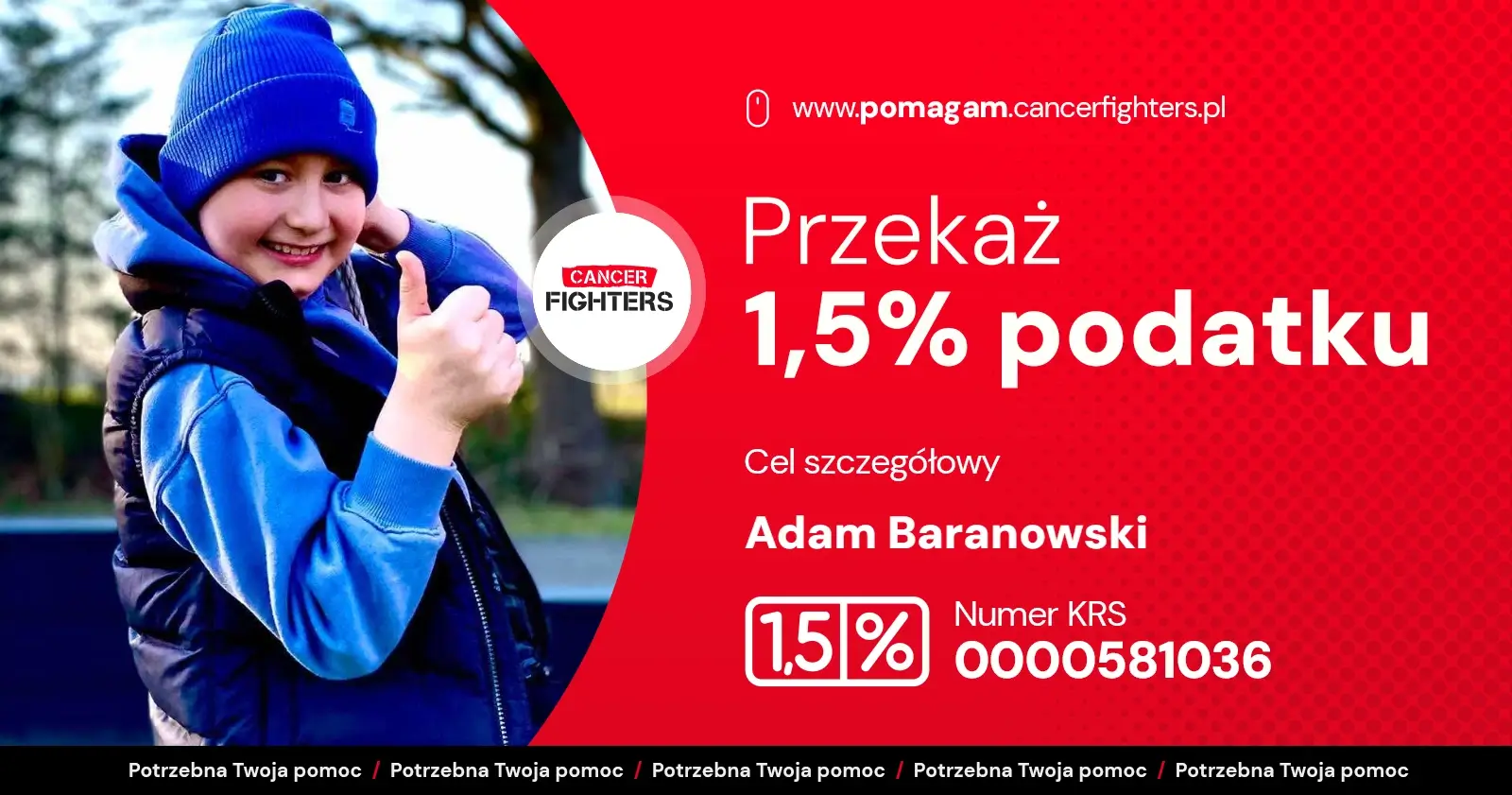 Na liście organizacji wyszukaj Fundacja Cancer Fighters lub 0000581036