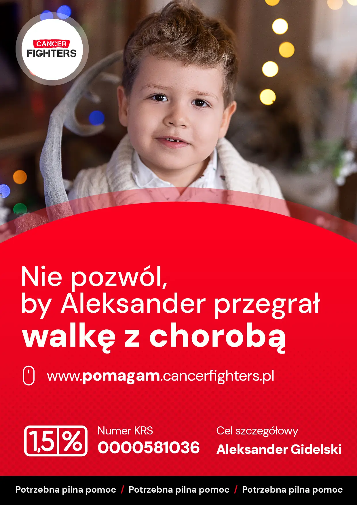 Od września 2023 roku do września 2024 Oluś przeszedł pełen cykl chemioterapii, który dał bardzo pozytywne rezultaty. Niestety, już w listopadzie wiedzieliśmy, że wznowa choroby jest nieunikniona. W marcu 2025 po potwierdzonych zmianach w mózgu i kości biodrowej rozpoczęto podawanie chemii celowanej, którą będzie przyjmować jeszcze przynajmniej przez najbliższe półtora roku.