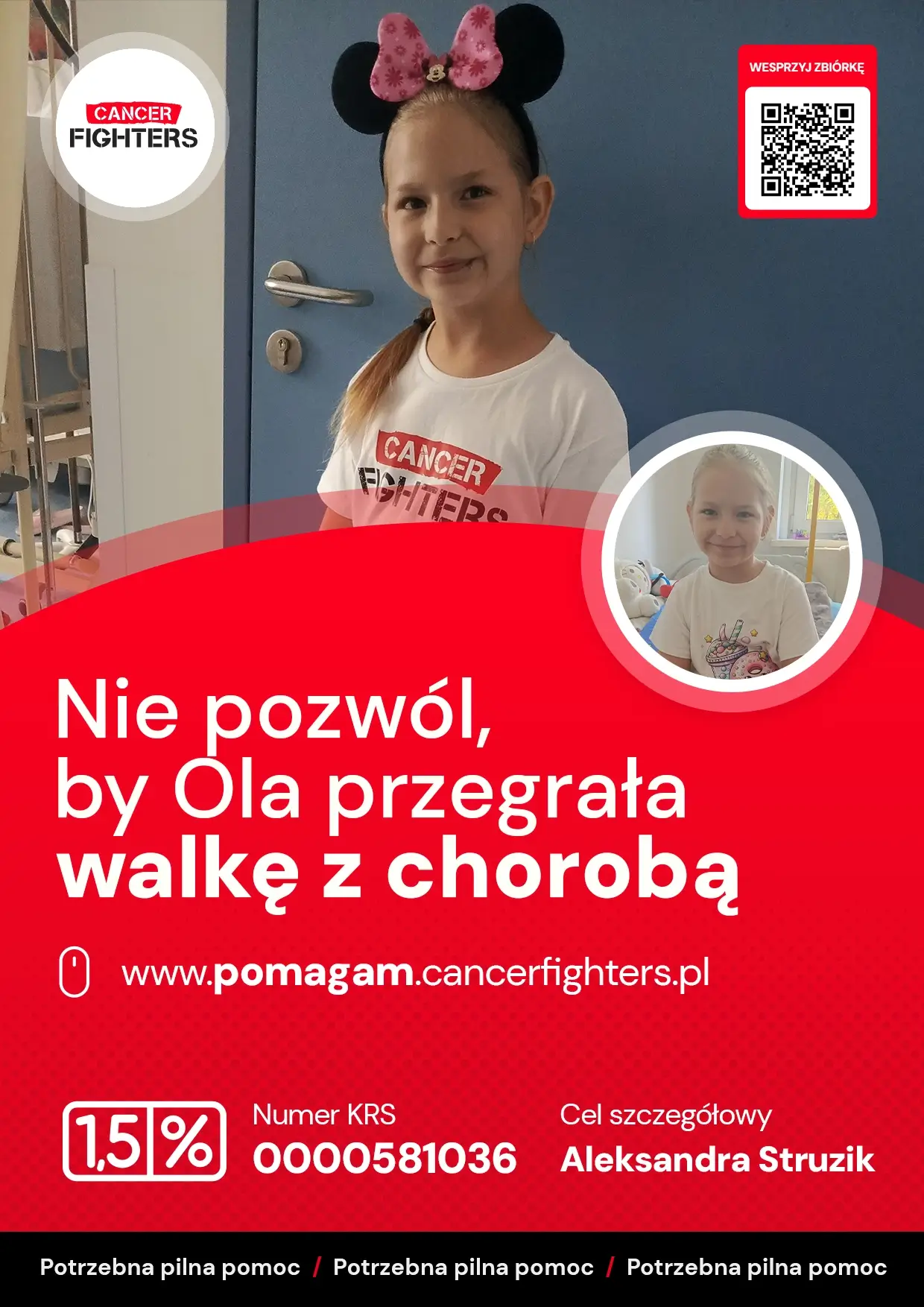 Ostateczna diagnoza była jednoznaczna – małopłytkowość, choroba niewidoczna na pierwszy rzut oka, a jednocześnie niosąca realne zagrożenie. Jeszcze tego samego dnia Ola została skierowana do Kliniki „Przylądek Nadziei” we Wrocławiu, gdzie rozpoczęto właściwe leczenie. Od tej pory każdy dzień to czujność, troska o najmniejszy siniak i nieustanne monitorowanie stanu zdrowia. Ola i jej bliscy uczą się funkcjonować w nowej rzeczywistości, w której obok strachu pojawia się także nadzieja i coraz większa siła do dalszej walki.