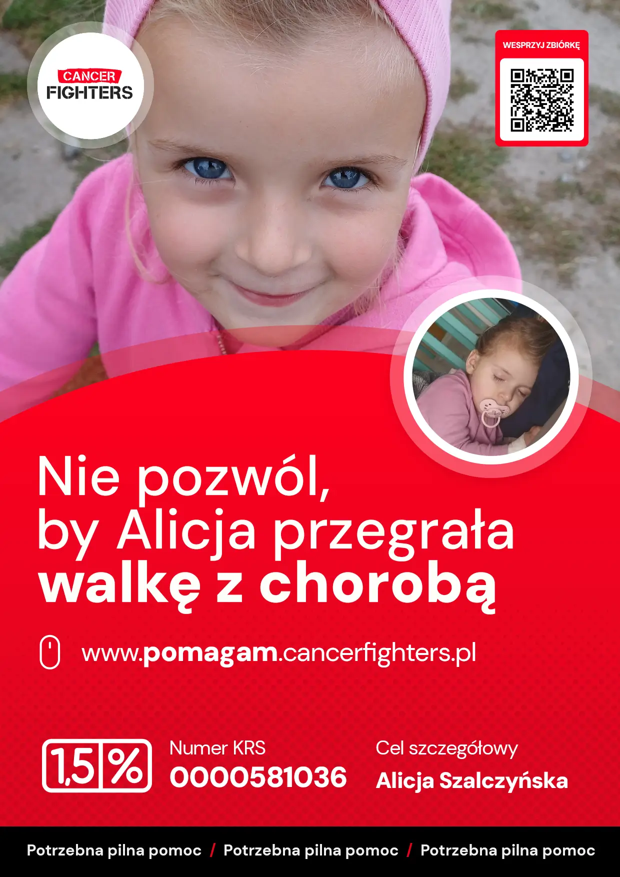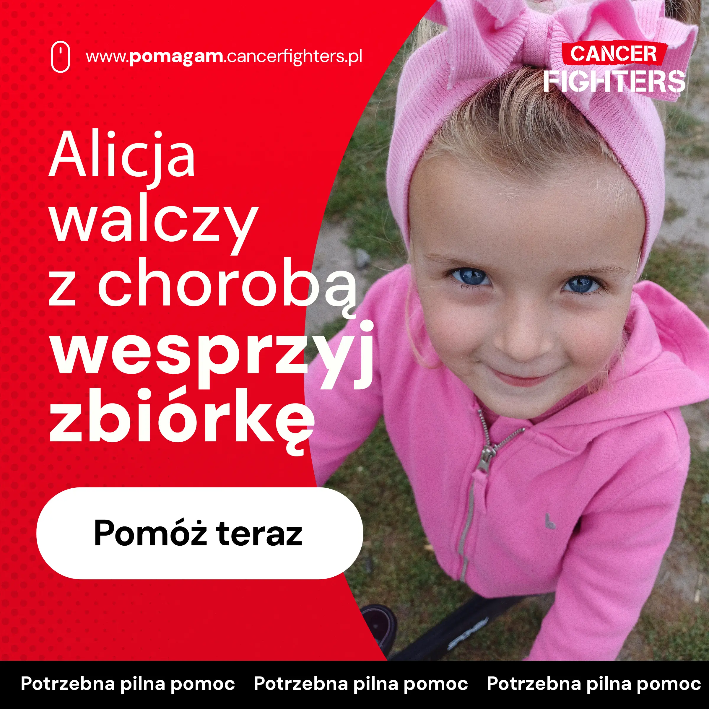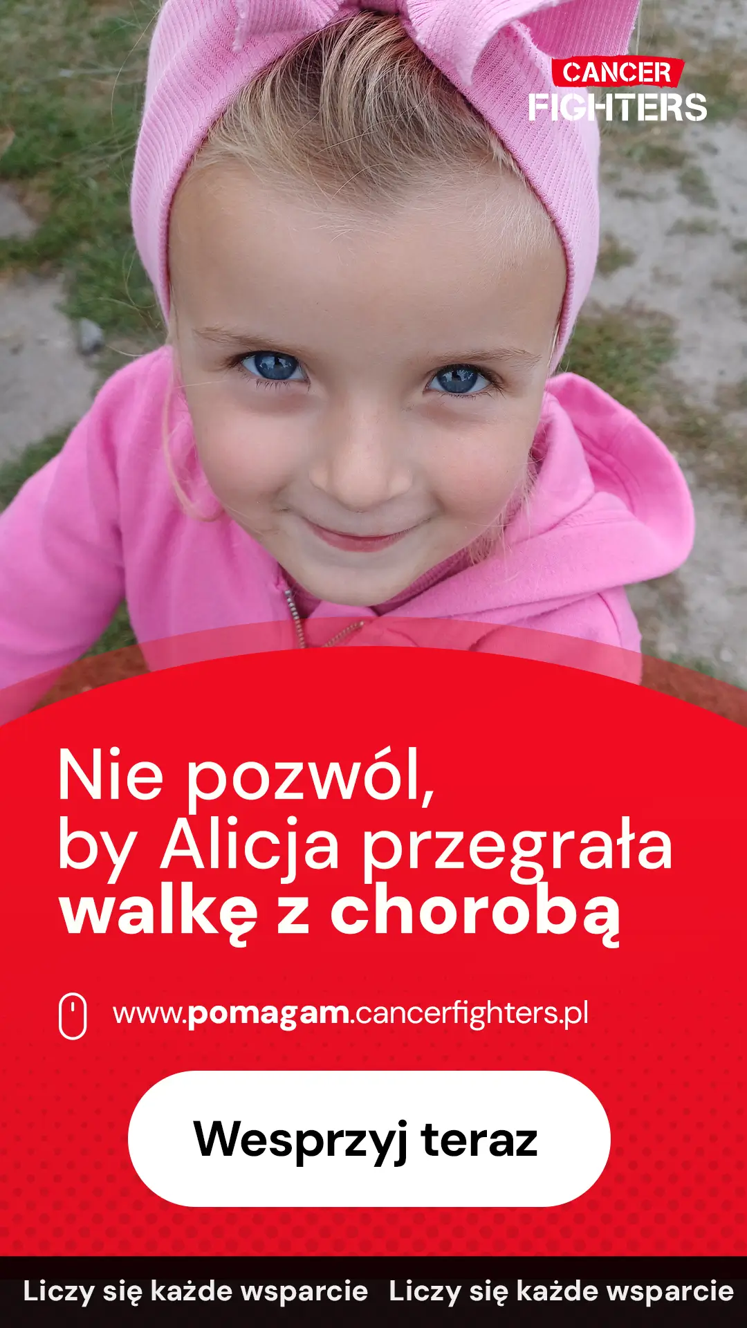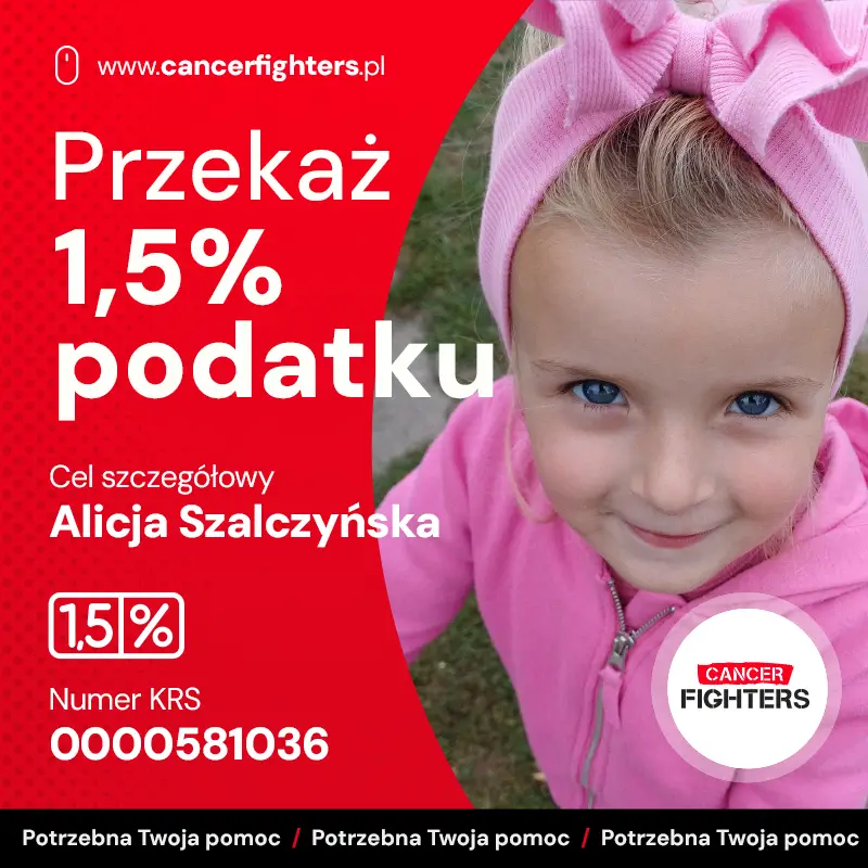 Choroba jednak nie zakończyła się wraz z operacją. Pojawiły się powikłania ze strony nerek oraz dróg żółciowych, a w listopadzie 2025 roku konieczny był zabieg ECPW i założenie protezy dróg żółciowych. Przed Alicją kolejne badania, biopsja pozostałej części wątroby i planowany zabieg usunięcia węzłów chłonnych. Mama dziewczynki zrezygnowała z pracy, by być przy niej każdego dnia, podczas gdy w domu zostało rodzeństwo, zmagające się z tęsknotą i niezrozumieniem tej sytuacji. Ta zbiórka ma dać rodzinie możliwość kontynuowania leczenia bez przerw i kompromisów – tak, by cała uwaga mogła skupić się na jednym: zdrowiu Alicji.