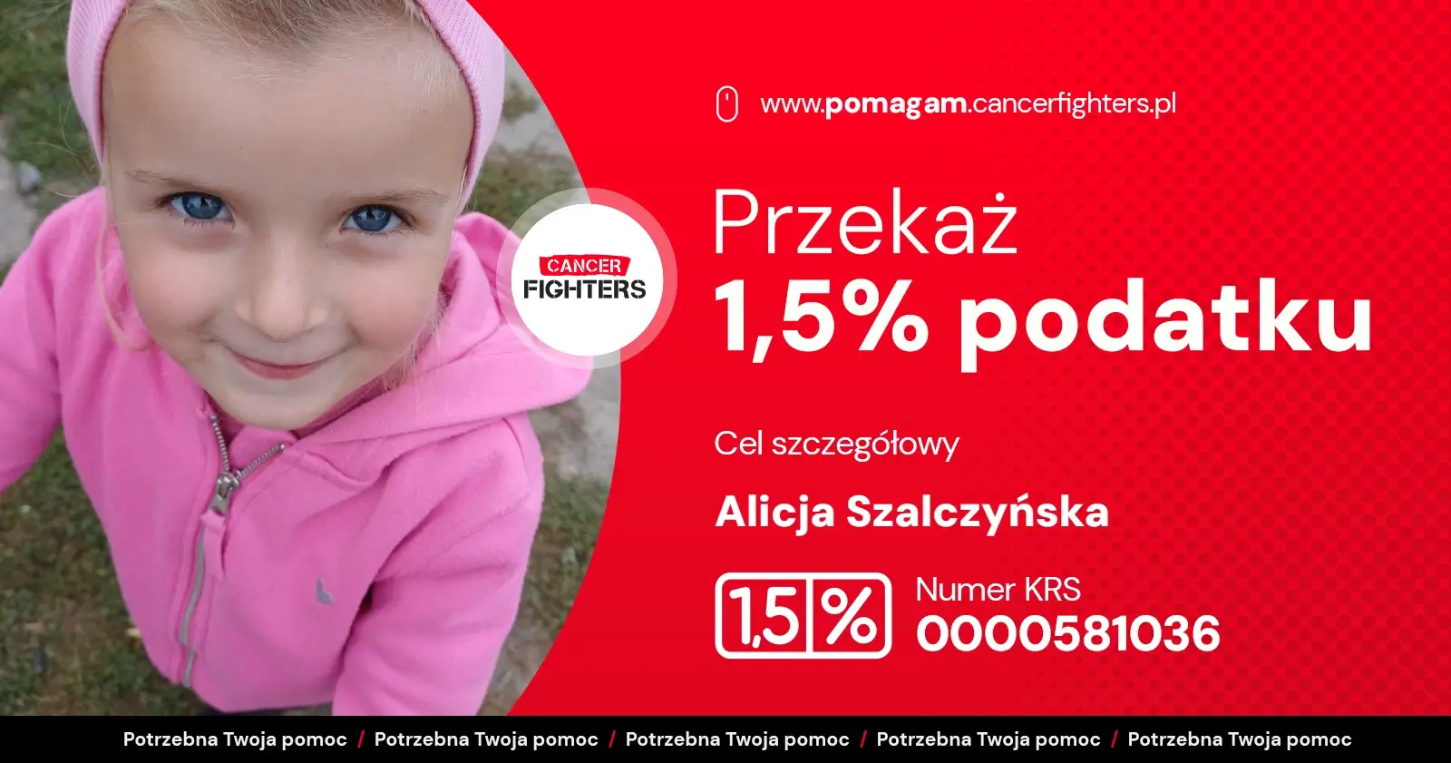 Na liście organizacji wyszukaj Fundacja Cancer Fighters lub 0000581036