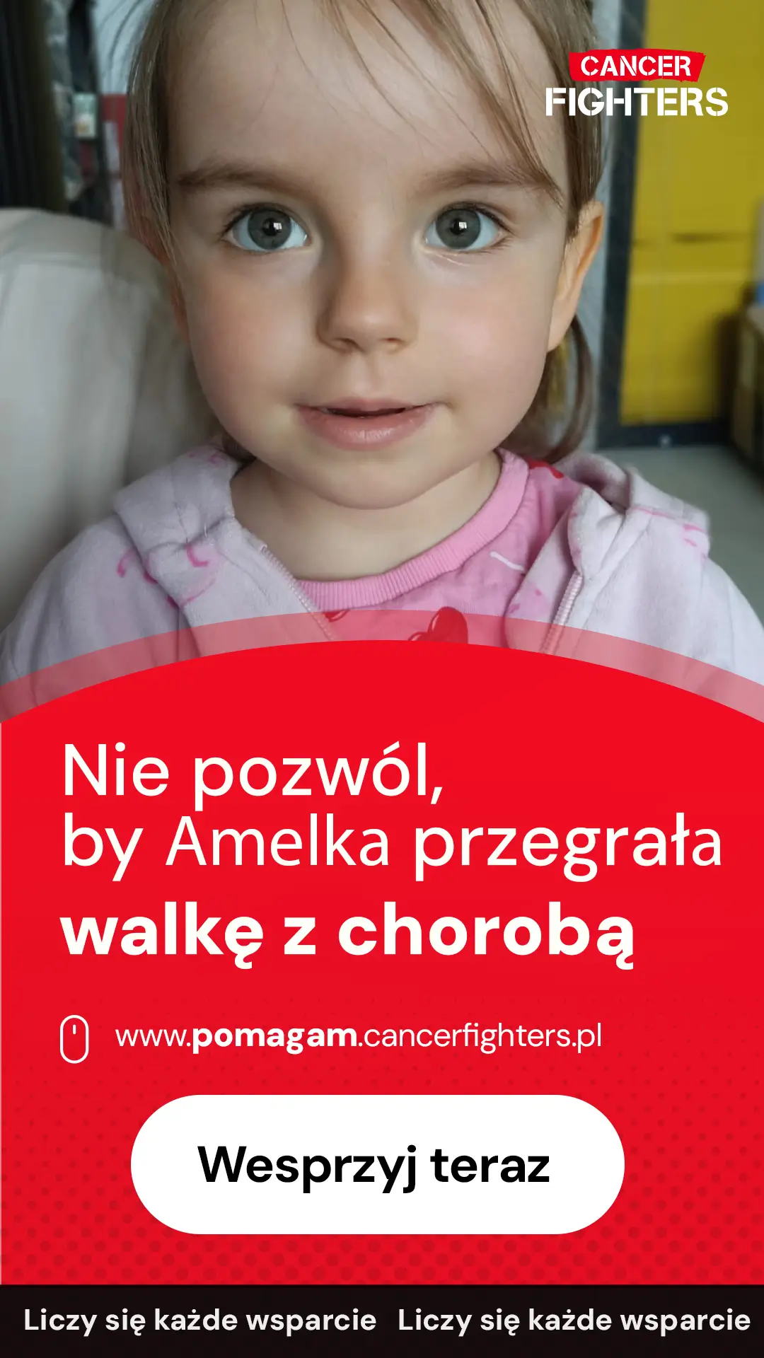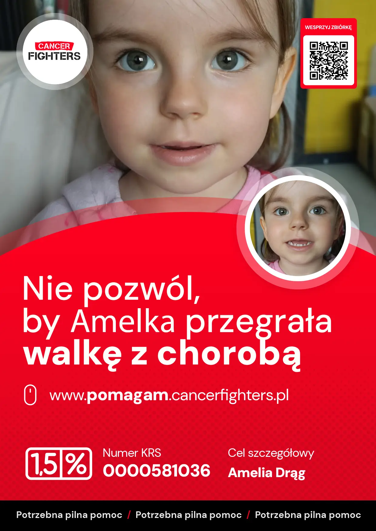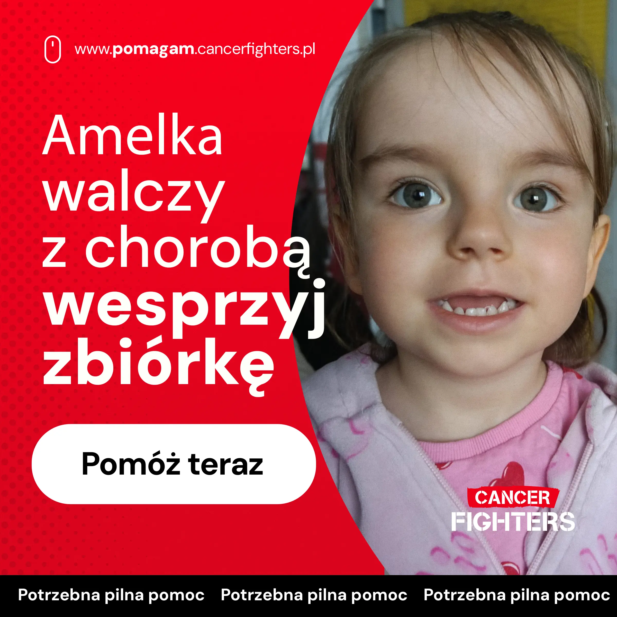 Dziś mama Amelki jest przy niej niemal bez przerwy, rezygnując z pracy, by móc trzymać córkę za rękę w najtrudniejszych momentach. Partner opiekuje się swoimi chorymi rodzicami, a w domu czeka także 16-letni syn, który każdego dnia martwi się o młodszą siostrę. Codzienność tej rodziny zmieniła się całkowicie. Amelka, która jeszcze niedawno z radością rysowała, układała puzzle i oglądała ukochany „Psi Patrol”, dziś leży smutna w szpitalnym łóżku i pyta, kiedy wróci do domu. Nie rozumie, co się dzieje, a odpowiedzi są najtrudniejsze. Leczenie jest długie i wymagające, a koszty z nim związane stanowią ogromne obciążenie. Dlatego każda forma wsparcia ma ogromne znaczenie — pozwala tej rodzinie skupić się na tym, co najważniejsze: zdrowiu Amelki i nadziei, że znów wróci jej dziecięcy uśmiech.