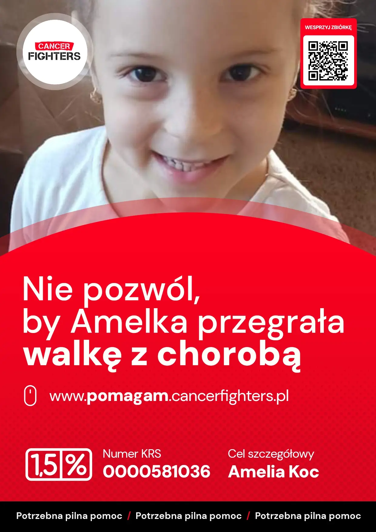 Dalsze leczenie rodzina kontynuowała w Instytucie Matki i Dziecka w Warszawie, gdzie przez dziewięć miesięcy Amelka przechodziła intensywną chemioterapię, a następnie radioterapię, mającą zapobiec nawrotowi choroby. Choć leczenie onkologiczne zakończyło się, jego skutki towarzyszą dziewczynce do dziś – uszkodzone nerki wymagają stałej kontroli i specjalistycznej opieki, a wizyty kontrolne odbywają się co trzy miesiące. Ostatnie badanie PET wykazało obecność niewielkiego, dwumilimetrowego guzka, który na razie nie rośnie, lecz pozostaje pod ścisłą obserwacją. Amelka ma za sobą niezwykle trudną walkę, a jej codzienność wciąż wymaga czujności, leczenia i troski, by mogła bezpiecznie dorastać mimo cienia choroby, który jeszcze całkiem nie zniknął.