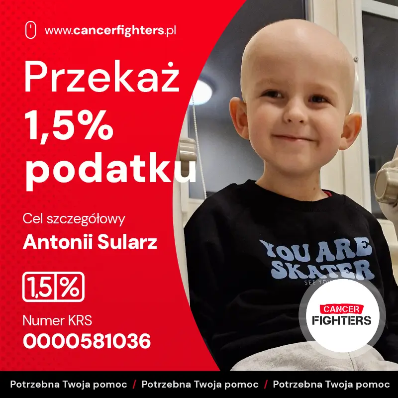 Choć chemioterapia była konieczna, nie pozostała bez konsekwencji – u Antka pojawiły się problemy z chodzeniem, wynikające zarówno z leczenia, jak i długiego okresu osłabienia. Dziś choroba znajduje się w remisji, a zaplanowana chemioterapia została oficjalnie zakończona, jednak droga do pełnego zdrowia wciąż trwa. Chłopca czekają regularne kontrole, rehabilitacja bioder i mięśni oraz dalsze leczenie wspomagające, by mógł wrócić do pełnej sprawności. Rodzice nadal ponoszą koszty dojazdów, wizyt u specjalistów i niezbędnych leków, dlatego każde wsparcie realnie pomaga Antkowi odzyskać siły i wrócić do beztroskiego dzieciństwa.