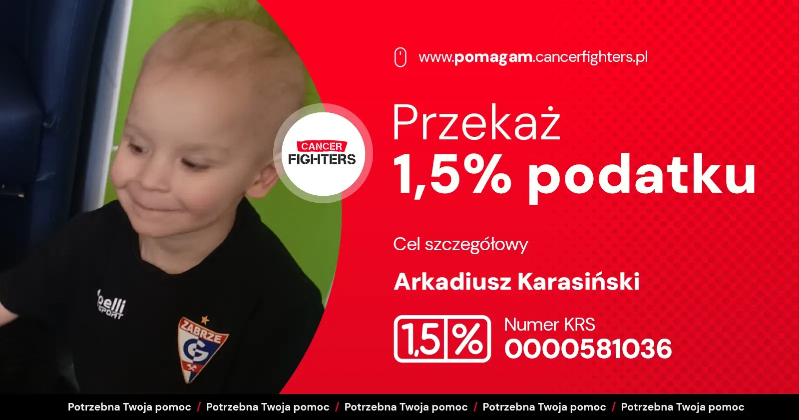 Na liście organizacji wyszukaj Fundacja Cancer Fighters lub 0000581036