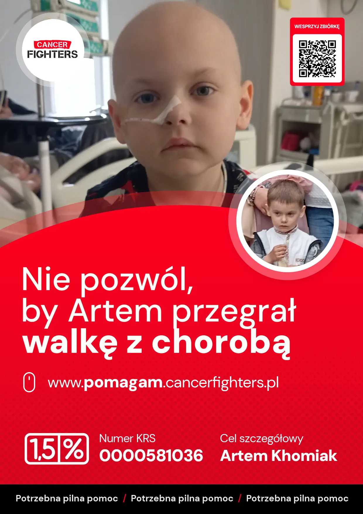 Początkowo powtarzające się infekcje Artema wyglądały na zwykłe dolegliwości przedszkolaka, ale z czasem gorączki wracały częściej, a pięcioletni chłopiec wyraźnie słabł. Coraz mniej się bawił, narzekał na bóle brzucha i nóg, a rodzice czuli, że za tymi objawami kryje się coś więcej. Podczas kolejnego epizodu wysokiej gorączki trafili do szpitala w Gdańsku. Tam podstawowe badania nie pozostawiły wątpliwości — 2 maja 2025 roku Artem usłyszał diagnozę ostrej białaczki limfoblastycznej. Od tego momentu szpital stał się jego nową codziennością: intensywna chemioterapia, punkcje, biopsje i przetoczenia krwi, a także liczne powikłania — od zapalenia trzustki i jelit, przez zakażenia po cewniku, po dwa epizody COVID-19. Mimo bólu i strachu Artem potrafi odnaleźć uśmiech, szczególnie wtedy, gdy mama przynosi mu ulubione klocki LEGO.