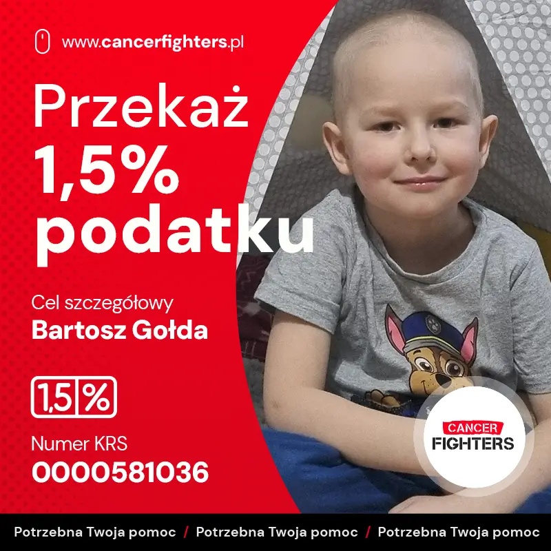 Obecnie Bartek przyjmował również chemię podtrzymującą do września 2024 roku. Środki zebrane w zbiórce zostaną przeznaczone na rehabilitację, fizjoterapię i zajęcia logopedyczne. Zachęcamy do wsparcia dzielnego Wojownika!