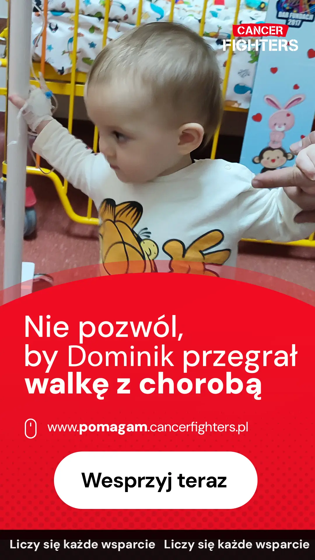 Dziś Dominik ma zakończoną terapię onkologiczną i pozostaje pod stałą opieką specjalistów. Rozpoczął się nowy etap – intensywna rehabilitacja, która ma pomóc mu odzyskać sprawność i szansę na możliwie samodzielne dzieciństwo. Choć leczenie dobiegło końca, choroba wciąż przypomina o sobie poprzez codzienne ćwiczenia, kontrole i nieustanną czujność. Każdy najmniejszy postęp jest dla rodziny ogromnym zwycięstwem i dowodem, że ta walka – rozpoczęta wraz z pierwszym oddechem – miała sens.