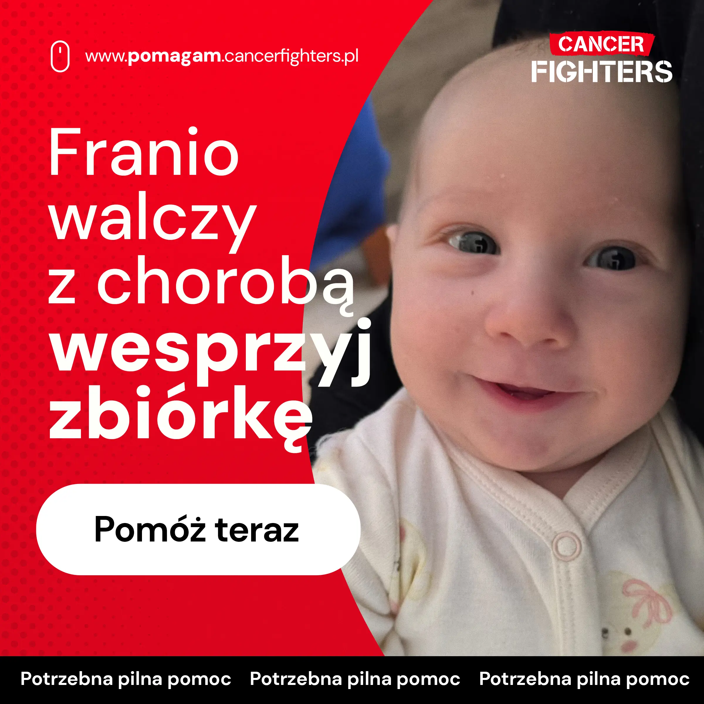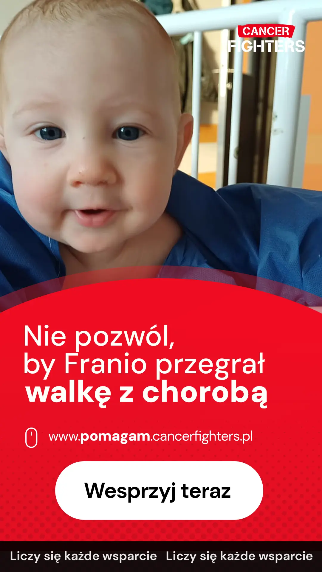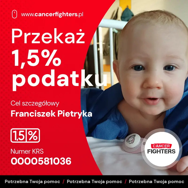 Maleńkie ciało każdego dnia mierzy się z chemią, antybiotykami i sterydami, a rodzice czuwają przy łóżeczku, próbując udźwignąć strach, zmęczenie i bezsilność. Mama praktycznie nie opuszcza oddziału, tata bierze urlop, a trzyletnia siostra uczy się odwiedzać braciszka w szpitalnej sali. Zbierane środki mają pomóc w zakupie nierefundowanych leków, suplementacji i rehabilitacji – wszystkiego, co może wzmocnić Frania w tej nierównej walce. To historia niemowlęcia, które zbyt wcześnie zostało pacjentem onkologii, i rodziny, która dzień po dniu stara się zachować resztki normalności, wierząc, że ich syn udźwignie to, co spadło na niego tak nagle.