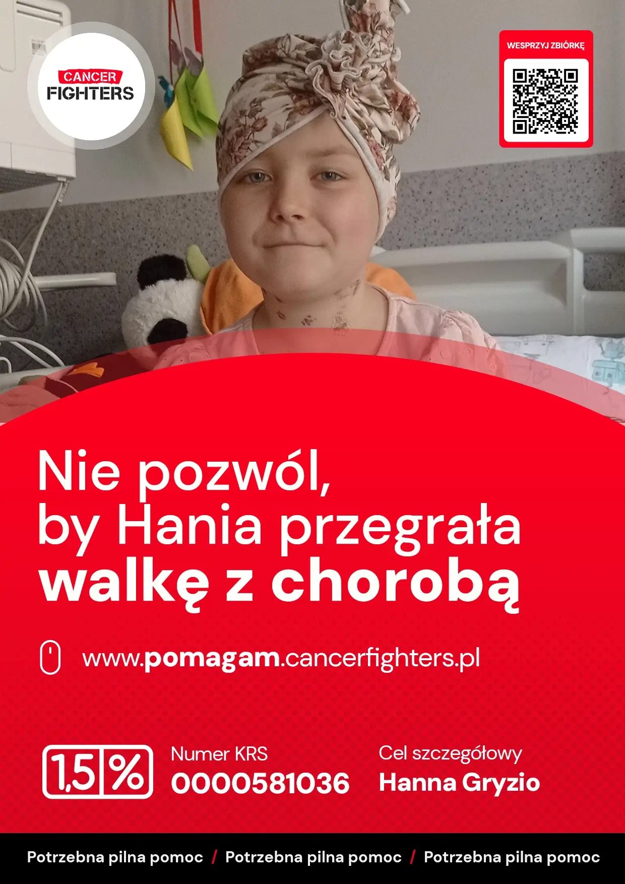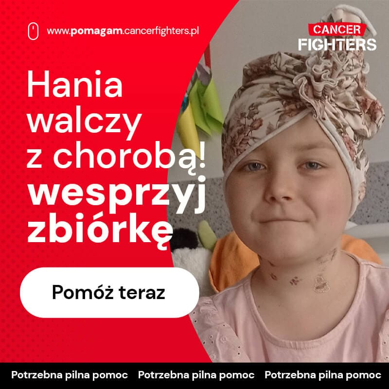 Hania, 7-letnia pełna ciekawości dziewczynka, od czerwca 2024 roku walczy z ostrą białaczką limfoblastyczną typu B. Diagnoza była szokiem, ale Hania dzielnie znosi intensywną chemioterapię, która potrwa 8 miesięcy, a następnie przejdzie na leczenie podtrzymujące. Obecnie choroba jest w remisji, a dziewczynka z determinacją stawia czoła trudnościom.