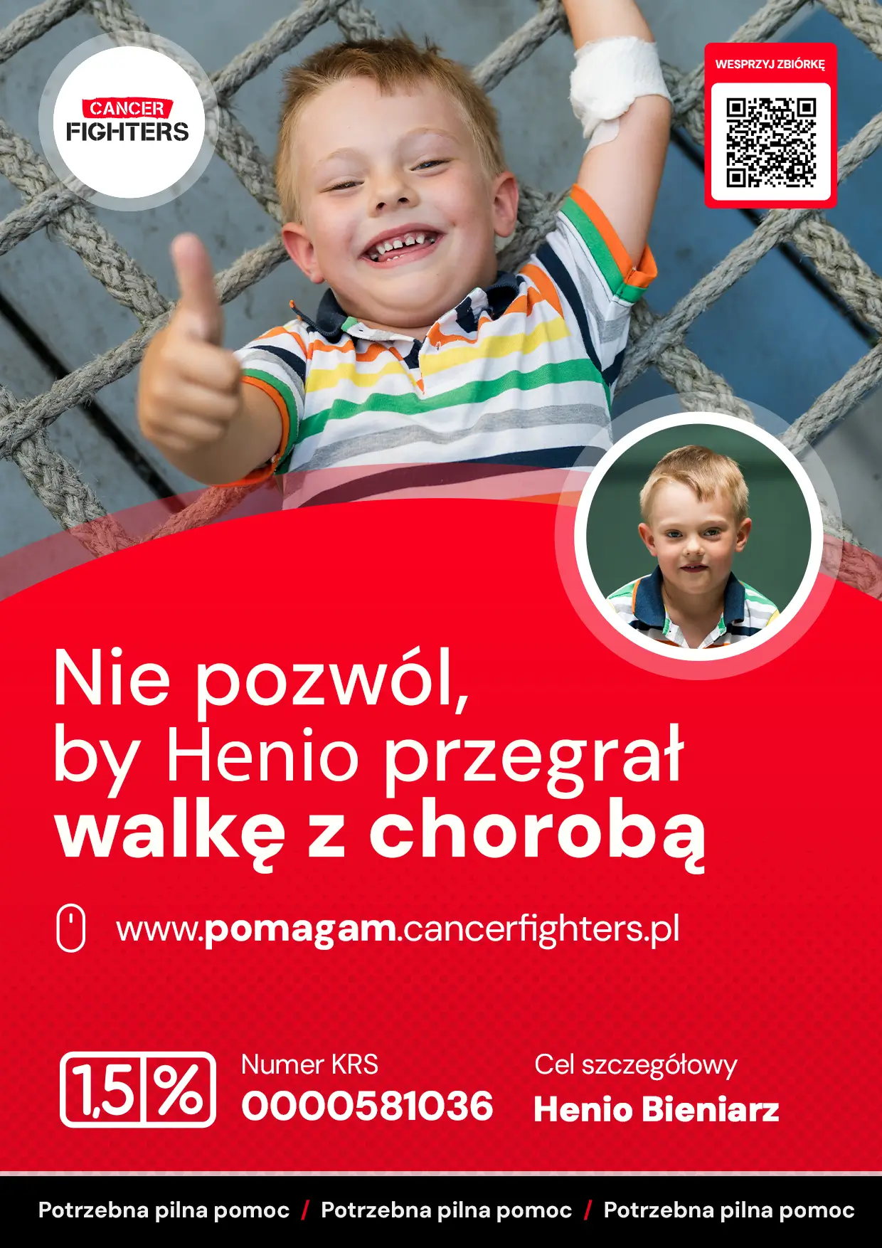 Rodzice proszą o pomoc w pokryciu wydatków na lek, dojazdy i niezbędne środki higieniczne. Pomóżmy Heniowi w walce o zdrowie i szansę na lepszą przyszłość!