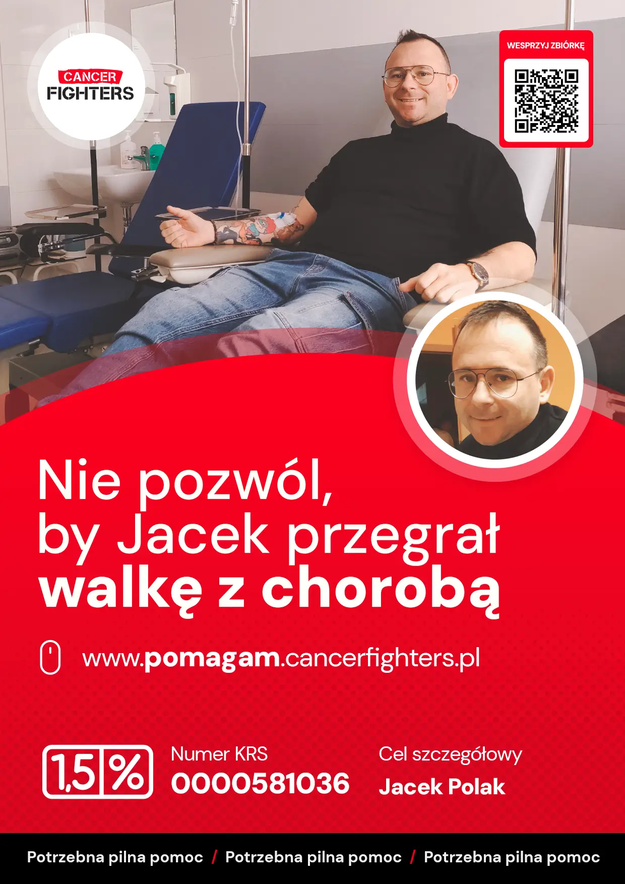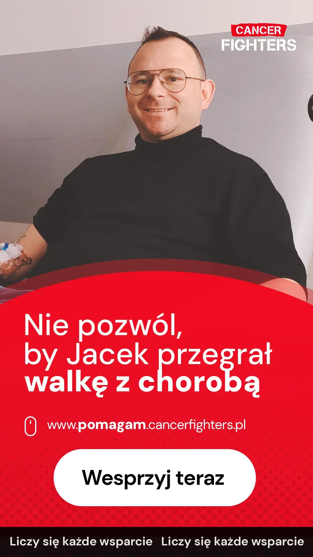 Organizm ponosi jednak wysoką cenę terapii — pojawiły się niedokrwistość, małopłytkowość, osłabienie, zmiany skórne oraz stany zapalne układu oddechowego i pokarmowego, które znacząco ograniczają codzienne funkcjonowanie. Jacek przebywa w domu pod opieką żony i trzynastoletniego syna, a choroba odebrała mu możliwość pracy i samodzielnego utrzymania rodziny. Najtrudniejsza jest bezradność wobec bólu i niepewność jutra, z którą mierzą się wszyscy domownicy, pozostający pod opieką psychologiczną. Dawne pasje — sport, jazda na rowerze, czytanie — stały się dziś sposobem na zachowanie fragmentu normalności. Życie tej rodziny nie zatrzymało się, lecz toczy się w znacznie węższej przestrzeni, pomiędzy chwilami ulgi a dniami, które wymagają po prostu ogromnej wytrwałości.