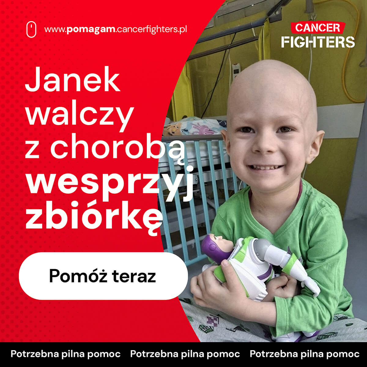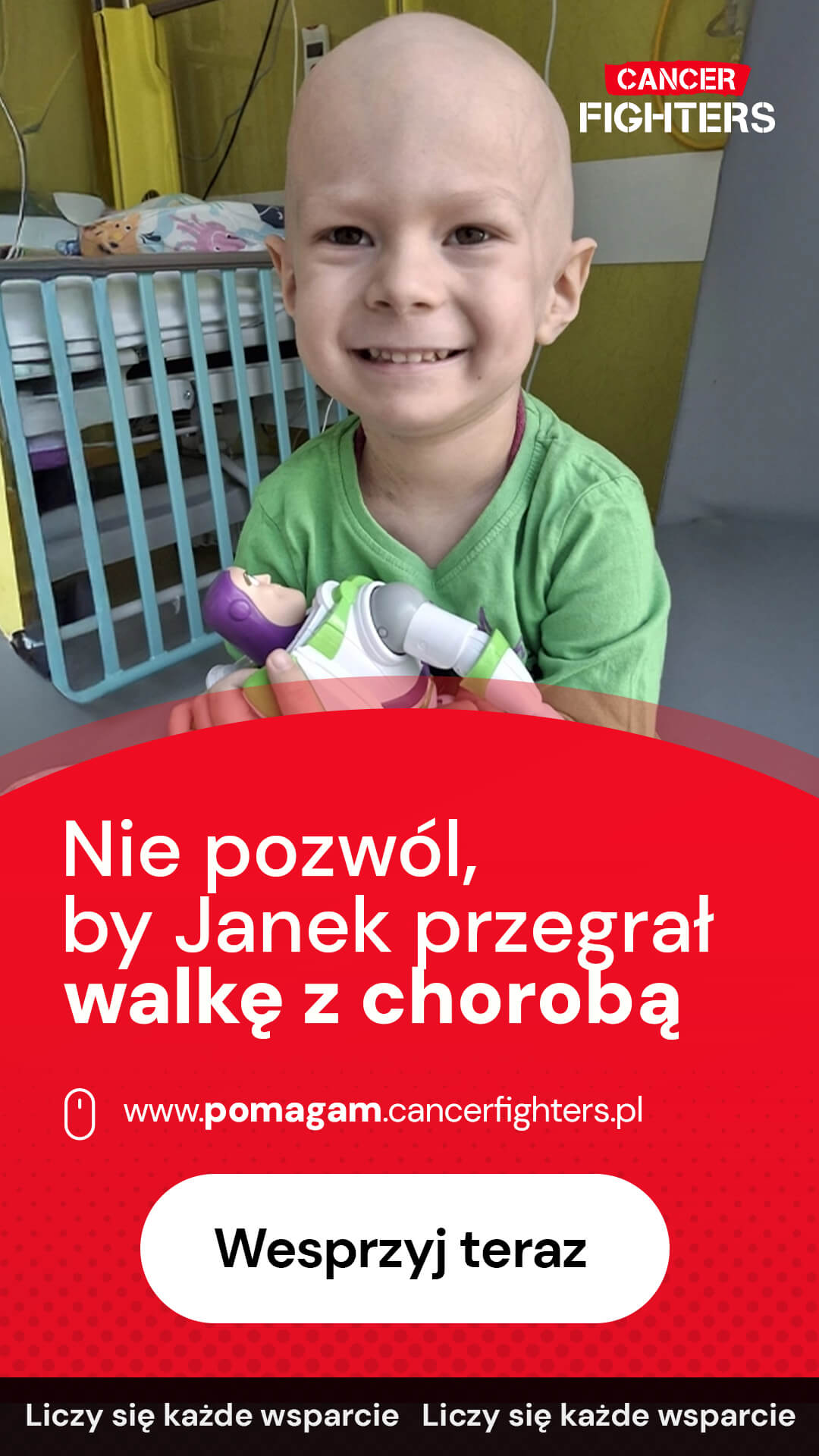 To jednak nie był koniec drogi. Kolejnym etapem był autoprzeszczep komórek macierzystych poprzedzony bardzo silną chemioterapią i długą izolacją, w której każda infekcja mogła stanowić zagrożenie życia. Przeszczep zakończył się powodzeniem, po nim przyszła radioterapia wymagająca codziennych naświetlań i znieczuleń. Dziś przed Jasiem ostatnie, kluczowe etapy leczenia – immunoterapia oraz szczepionka, która ma zapobiec nawrotowi choroby i dać szansę na trwałe zwycięstwo. To walka o to, by mógł wrócić do zwyczajnego dzieciństwa, bez bólu i szpitalnych ścian. Każde wsparcie przybliża go do życia, w którym strach pozostanie już tylko wspomnieniem.