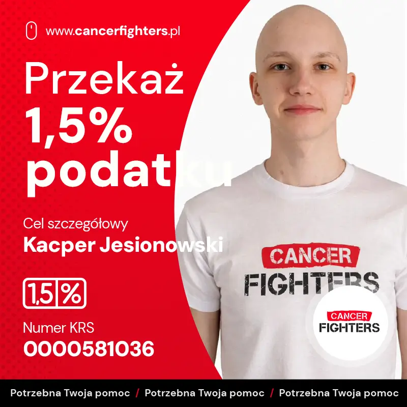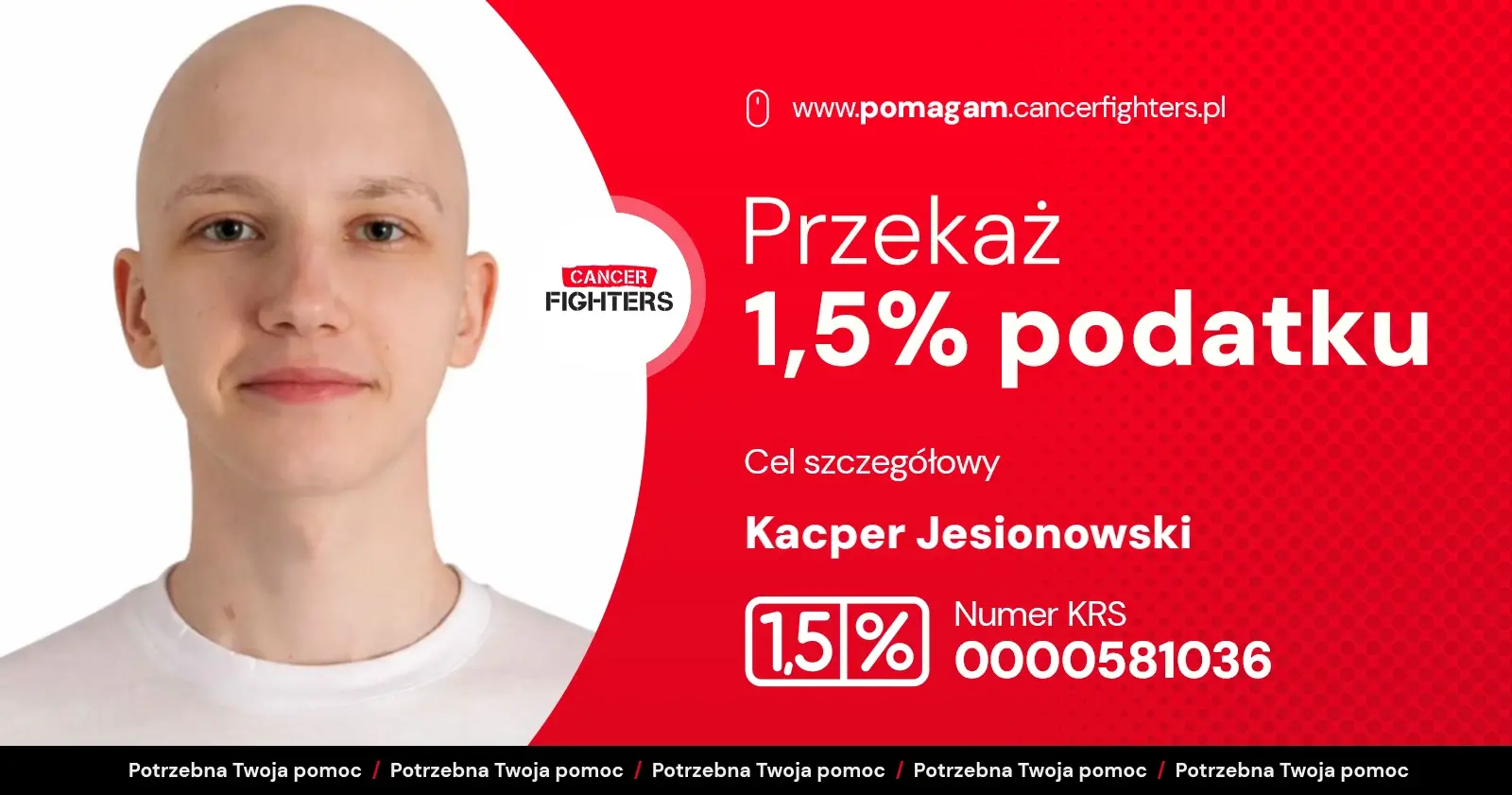 Na liście organizacji wyszukaj Fundacja Cancer Fighters lub 0000581036