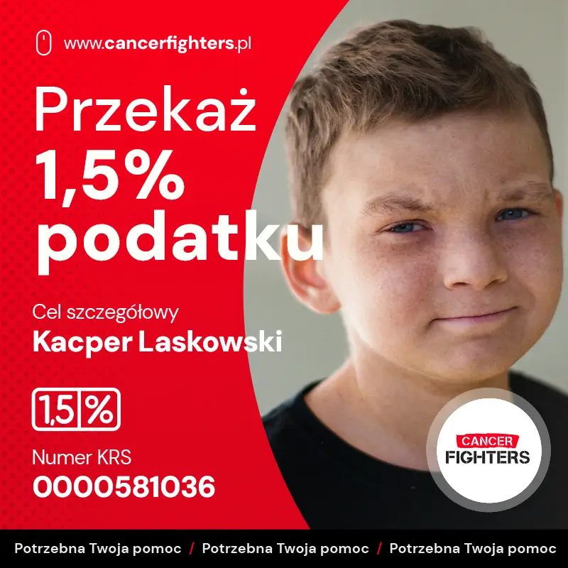11-letni Kacper od trzech lat zmaga się z ostrą białaczką limfoblastyczną T-komórkową, a od dwóch lat żyje z konsekwencjami przeszczepu szpiku. Niestety, jego organizm nadal boryka się z powikłaniami, w tym graftami, które dotykają wielu narządów: płuc, oczu, wątroby, skóry, jelit i śluzówek. Powikłania te są uciążliwe i znacząco wpływają na codzienne życie Kacpra oraz wymagają stałej opieki medycznej.