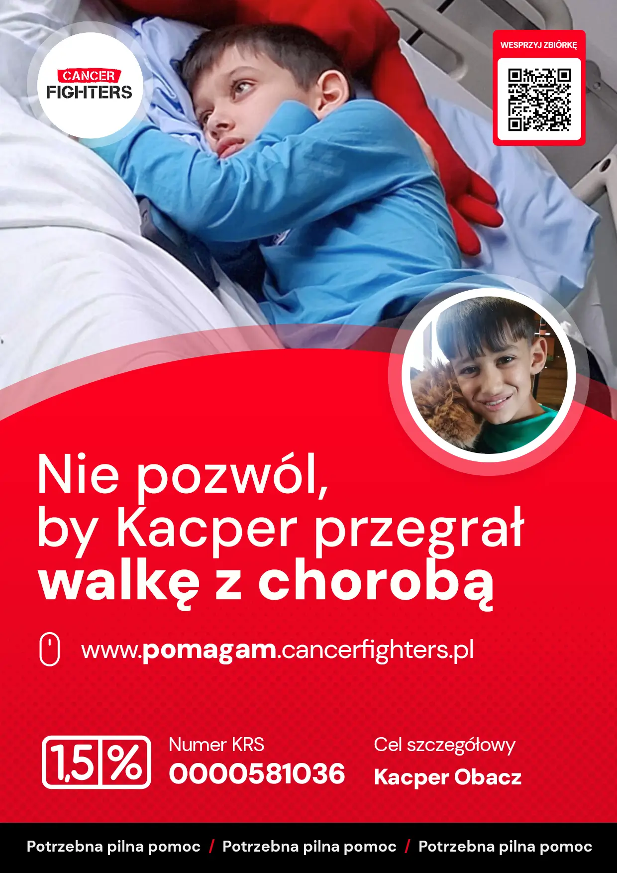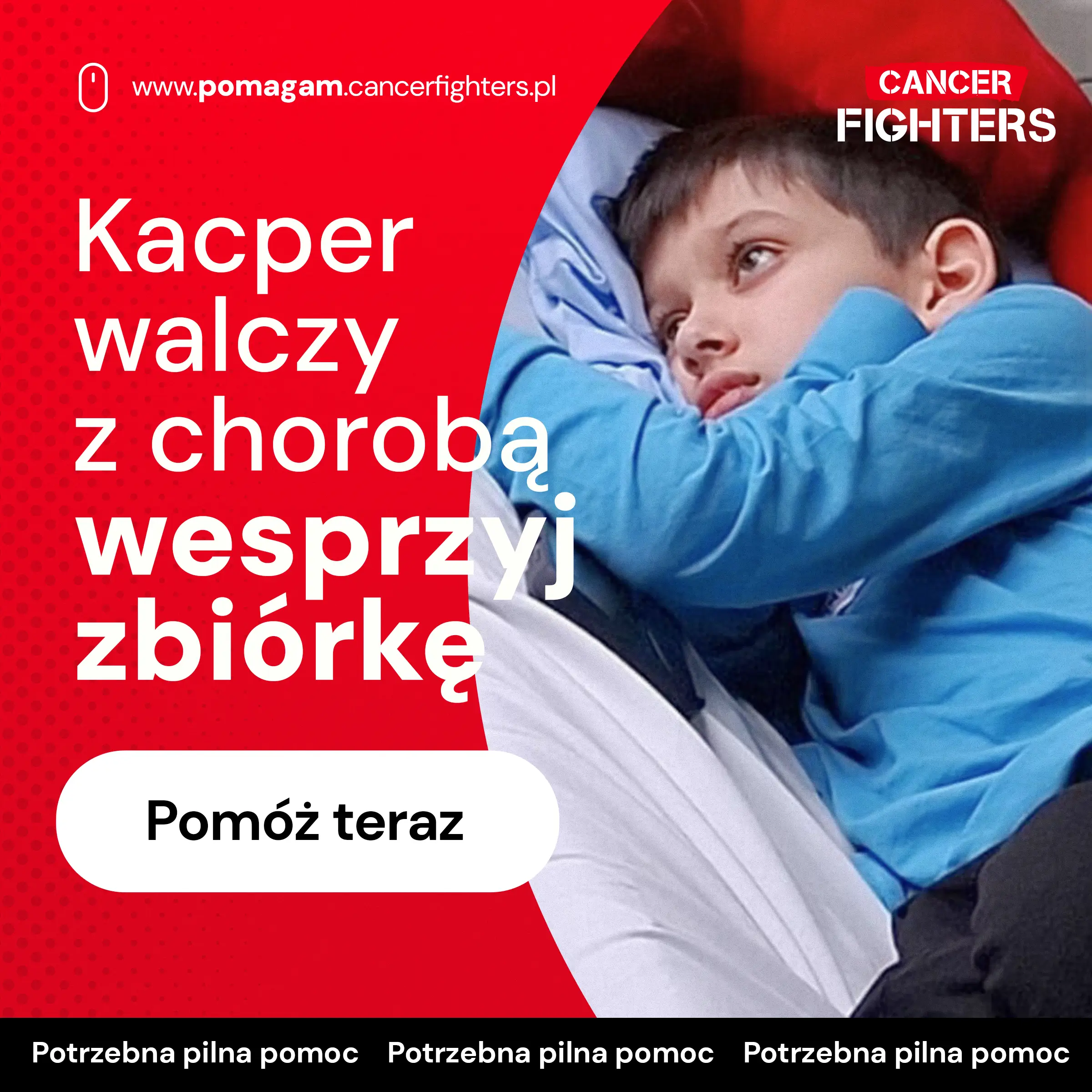 Kilka miesięcy temu Kacper zauważył niewielką zmianę na podniebieniu, która początkowo nie wyglądała groźnie, jednak rodzice od razu rozpoczęli poszukiwanie przyczyny. Liczne wizyty u specjalistów i badania przez długi czas nie przynosiły jednoznacznej odpowiedzi, aż do momentu biopsji na oddziale otolaryngologii. Diagnoza brzmiała: mięsak prążkowanokomórkowy. Chorobę wykryto wcześnie, bez przerzutów, co daje nadzieję, ale nie usuwa lęku, który pojawia się wraz z rozpoznaniem nowotworu u dziecka. W lutym Kacper trafił do ośrodka onkologii dziecięcej, gdzie potwierdzono brak innych ognisk choroby. Guz usunięto laserowo, jednak po zabiegu obrzęk utrudniał oddychanie i przełykanie, a przez kilka dni chłopiec nie mógł jeść ani pić. Wkrótce rozpoczęła się chemioterapia, powodująca nudności, wymioty i silne osłabienie.