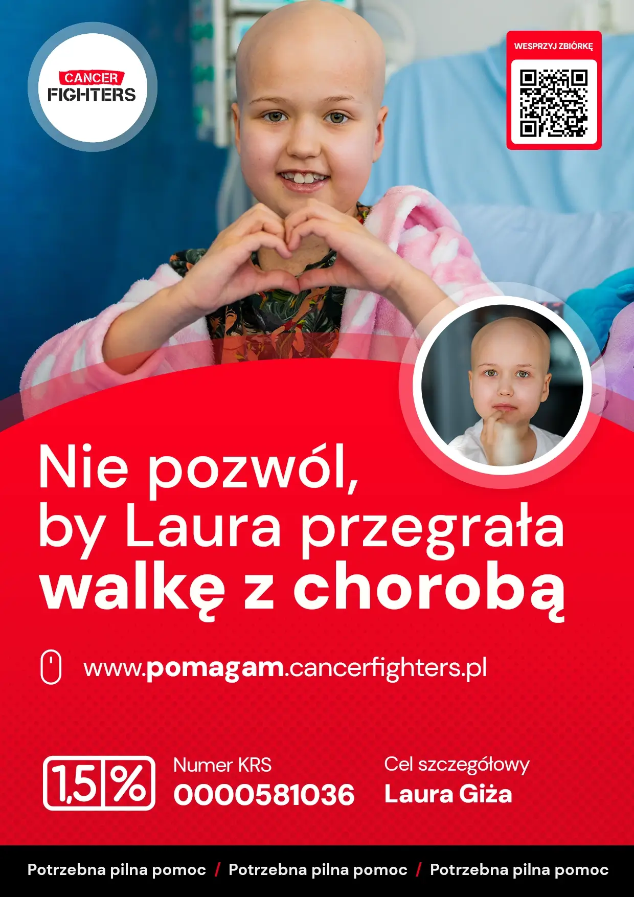 18 listopada 2024 roku na udach Laury pojawiły się dwie sinoczerwone plamki. Z początku wyglądały niegroźnie – jak uderzenie albo uczulenie. Zamiast znikać, zaczęły się jednak mnożyć, a Laura stawała się coraz cichsza i bardziej zmęczona, jakby traciła swoją energię. Jedna wizyta w przychodni wystarczyła, by skierować ją na oddział pediatrii, a już następnego dnia do „Przylądka Nadziei” we Wrocławiu. Tam padły słowa, które zatrzymały czas: ostra białaczka limfoblastyczna – złośliwy nowotwór krwi wymagający natychmiastowego leczenia. Jeszcze chwilę wcześniej Laura trenowała taniec towarzyski, zdobywała złote medale i szykowała się do kolejnych zawodów. Rak okazał się szybszy niż jej marzenia.