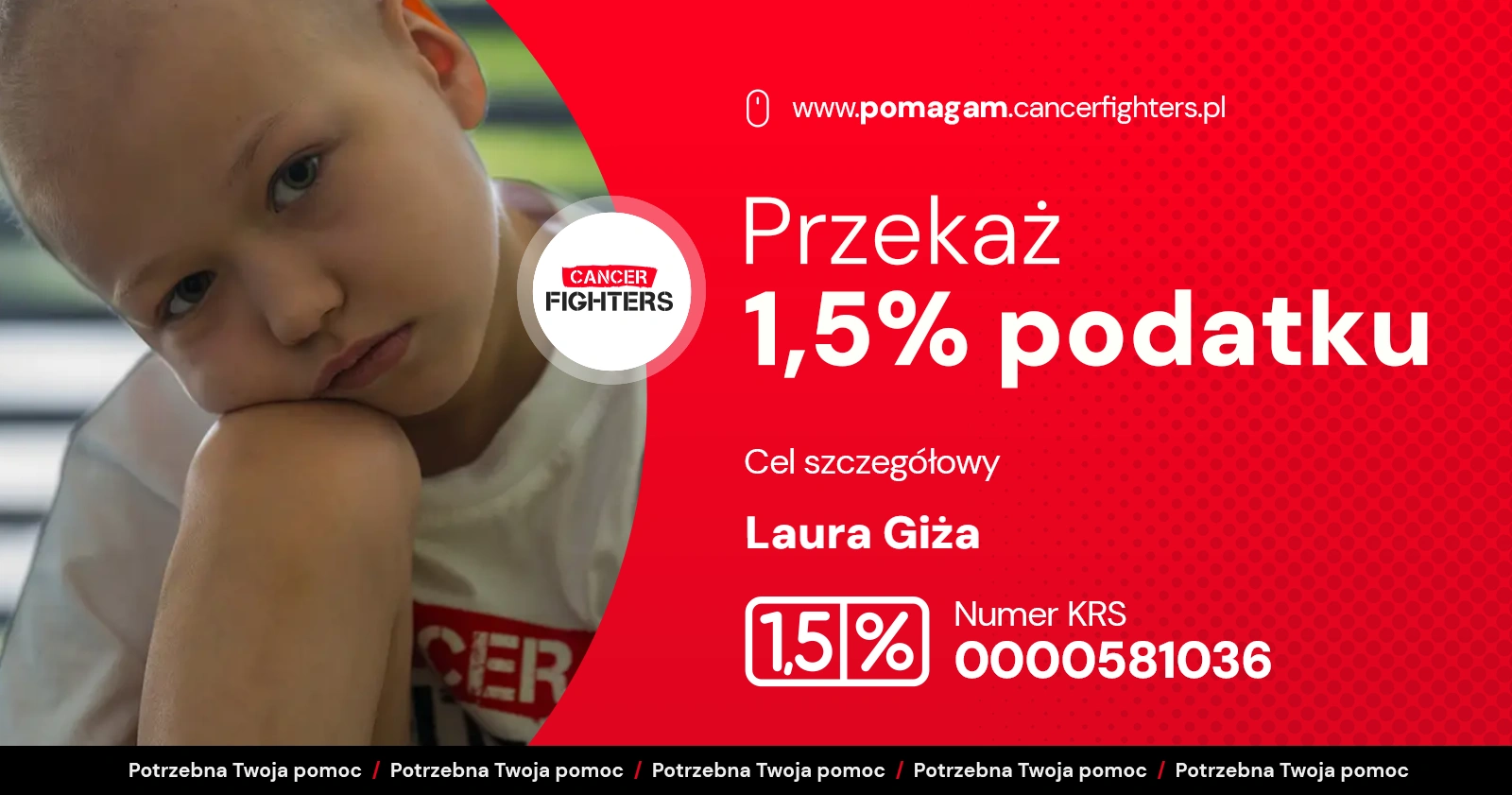 Na liście organizacji wyszukaj Fundacja Cancer Fighters lub 0000581036