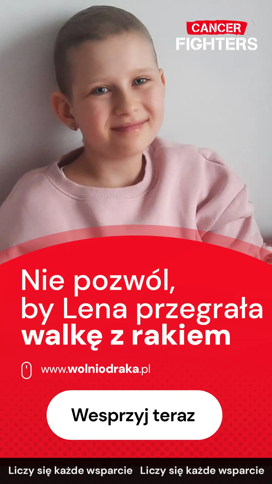 Dziś dziewczynka przebywa w szpitalu pod stałą opieką mamy, podczas gdy tata i starsza siostra Oliwia łączą życie rodzinne z tęsknotą i nieustannym lękiem o jej zdrowie. Rodzina funkcjonuje między dwoma domami — tym rodzinnym i tym szpitalnym — a rozłąka najbardziej boli dwie siostry, które marzą o powrocie do wspólnych codziennych chwil. Mimo trudnego leczenia, silnego bólu, obrzęku śluzówek i trudności z jedzeniem, Lenka wciąż szuka światła w kolorach i twórczości: maluje, tworzy prace plastyczne, układa klocki LEGO, gdy tylko zdrowie na to pozwala. Przed nią wciąż długie miesiące leczenia, ale każdy gest wsparcia, każde dobre słowo i każda pomoc finansowa stają się dla niej i jej rodziny realną siłą, która pomaga wierzyć, że przed Lenką jeszcze wiele zdrowych, pełnych radości dni.