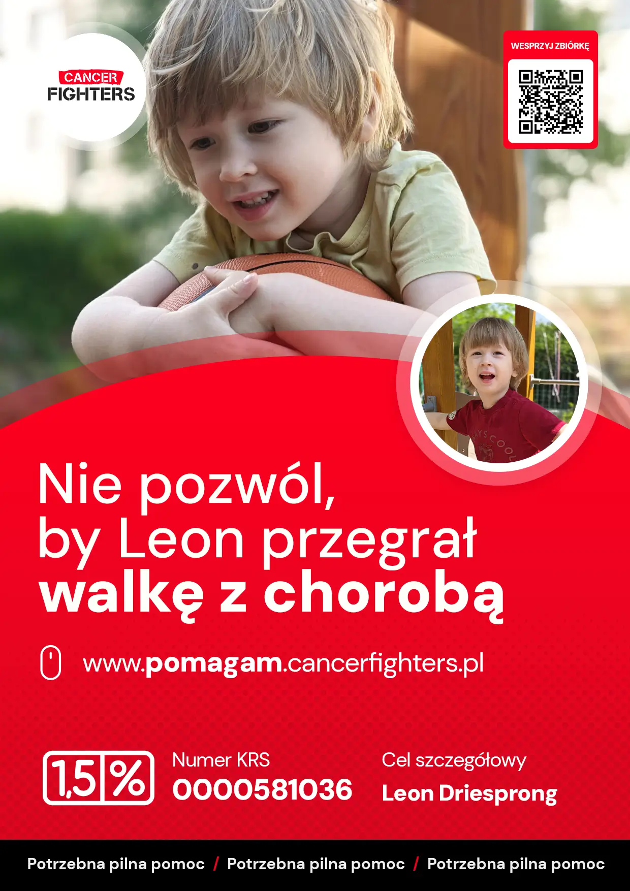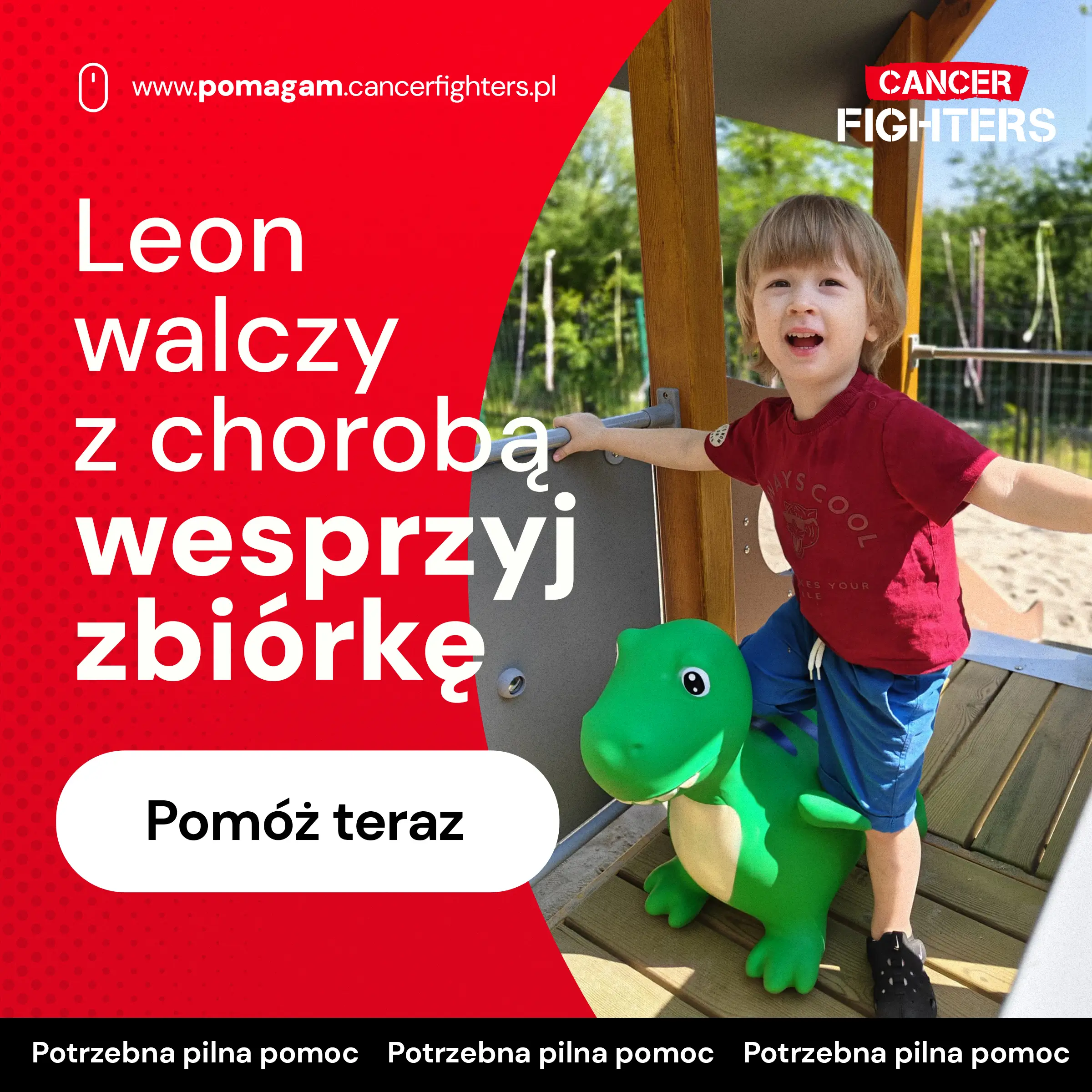 Choroba całkowicie przeorganizowała życie rodziny. Przed Leosiem co najmniej dwa miesiące nieprzerwanego pobytu w szpitalu, a jego rodzice funkcjonują w ciągłej rotacji, by synek nigdy nie był sam. Mama czuwa przy nim w dzień, nocą wraca do domu do rocznego Ignasia, a wtedy przy łóżku Leosia zostaje tata. Praca, codzienność i plany zeszły na dalszy plan — liczy się tylko leczenie i obecność przy dziecku. W domu młodszy braciszek tęskni, a babcia przejęła opiekę, by rodzice mogli ratować starszego syna. Leczenie białaczki to jednak nie tylko strach i ból, ale także ogromne koszty, których rodzina nie jest w stanie udźwignąć sama. Rodzice proszą o wsparcie, bo ich jedynym pragnieniem jest to, by Leoś mógł znów żyć w świecie bez szpitalnych sal, kroplówek i lęku — świecie, który nie powinien ranić tak kruchego życia.
