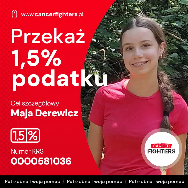 Na liście organizacji wyszukaj Fundacja Cancer Fighters lub 0000581036