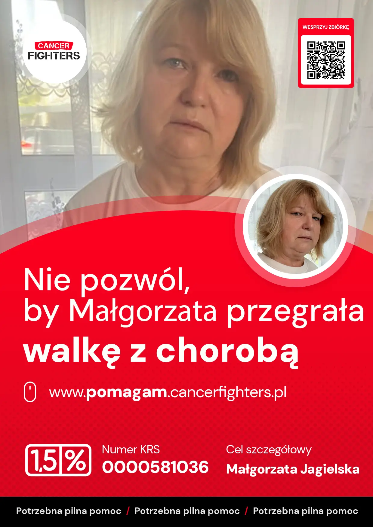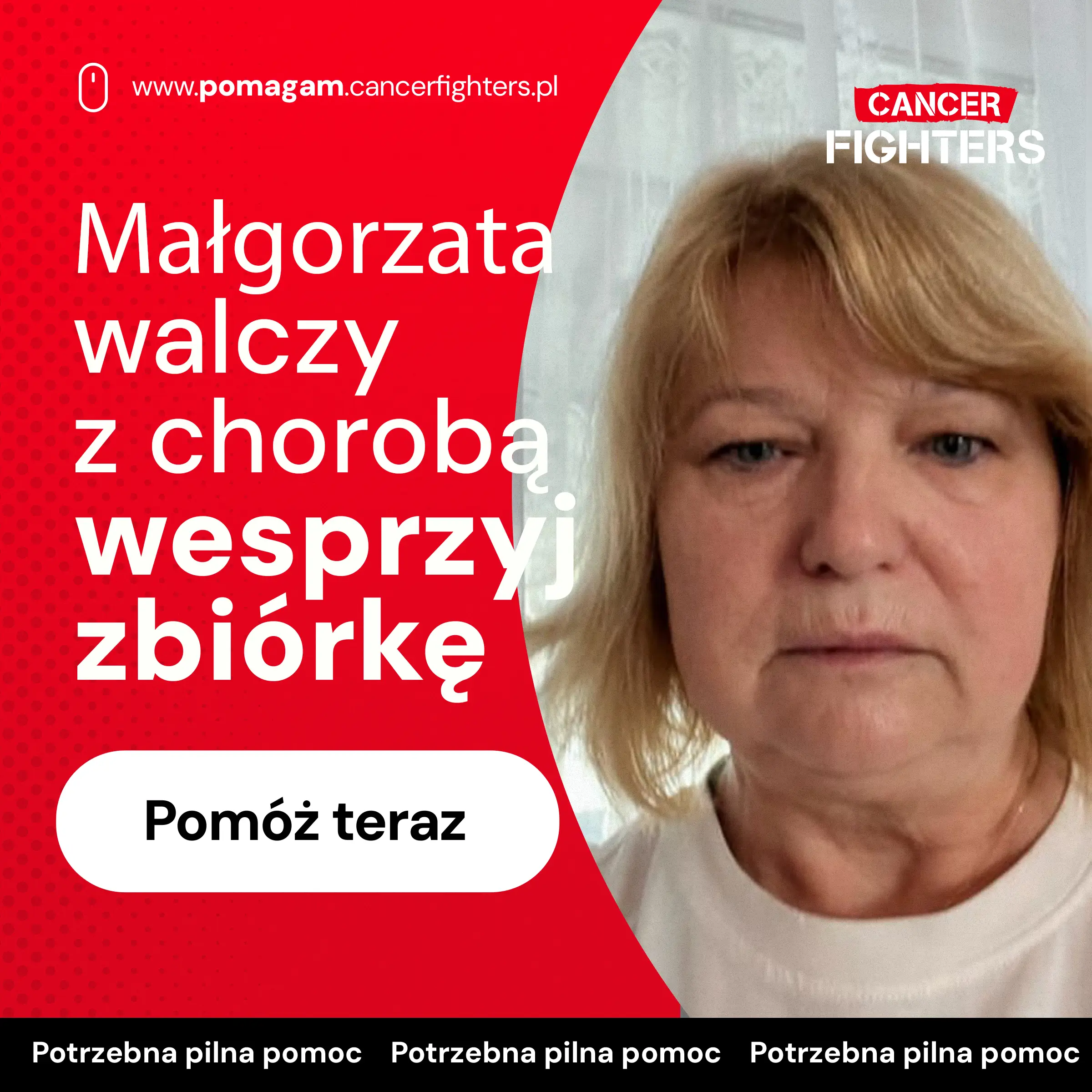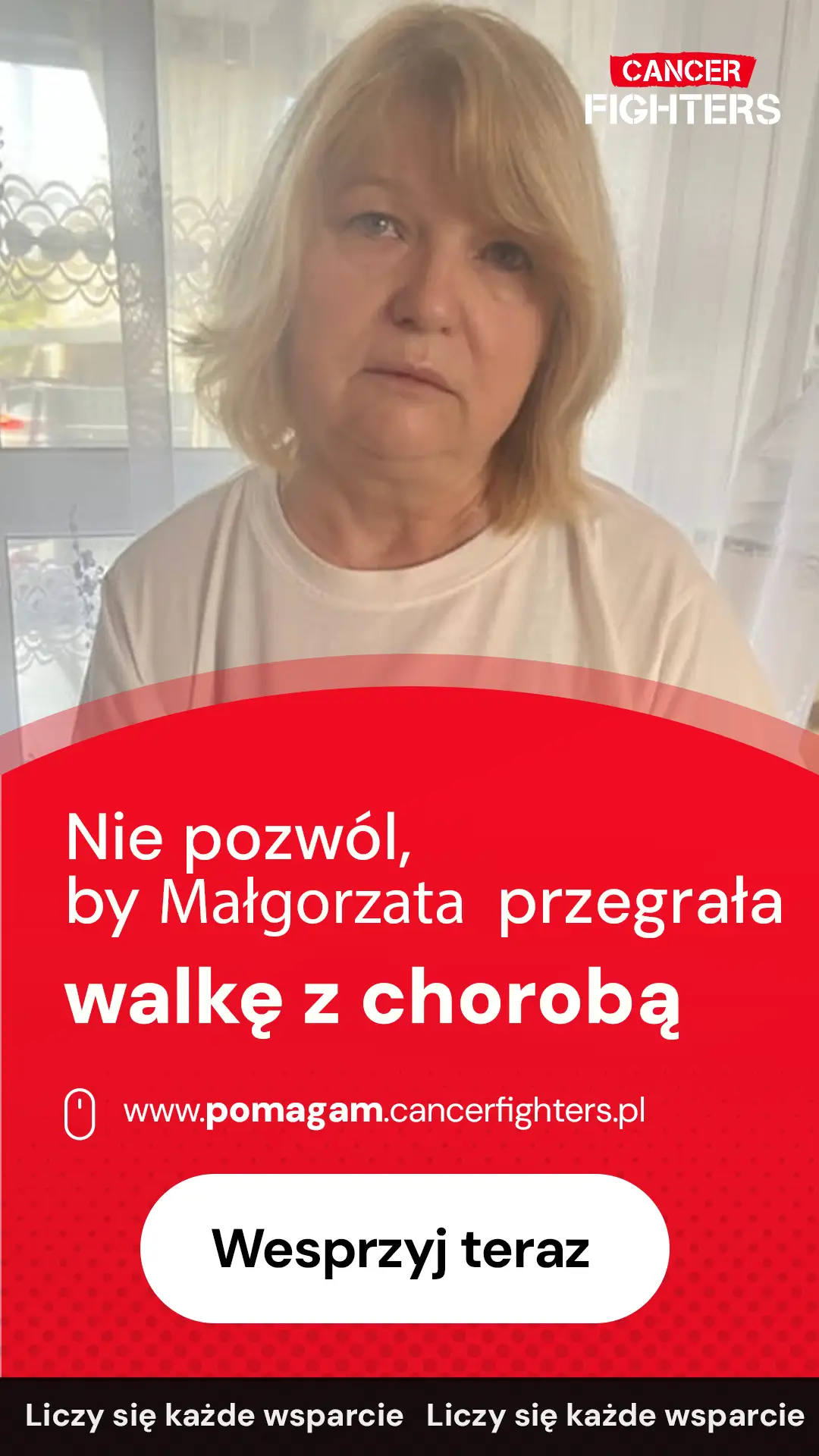 Jej codzienność już wcześniej była naznaczona walką o sprawność i zdrowie. Przebyty udar krwotoczny pozostawił niedowład lewej strony ciała, a choroba niedokrwienna serca wymaga ciągłej uważności i ograniczeń. Do tego dochodzi depresja — cichy, niewidzialny ciężar, który sprawia, że każdy dzień wymaga jeszcze więcej siły. Mimo tych wszystkich trudności Małgorzata nie zatrzymuje się. Idzie dalej, krok po kroku, szukając chwil wytchnienia w prostych rzeczach — jak czytanie książek, które pozwalają jej choć na moment oderwać się od codzienności. Dziś potrzebuje wsparcia, które pomoże jej dalej walczyć i zachować choć odrobinę spokoju. Każdy gest pomocy ma ogromne znaczenie i daje jej siłę, by iść naprzód.