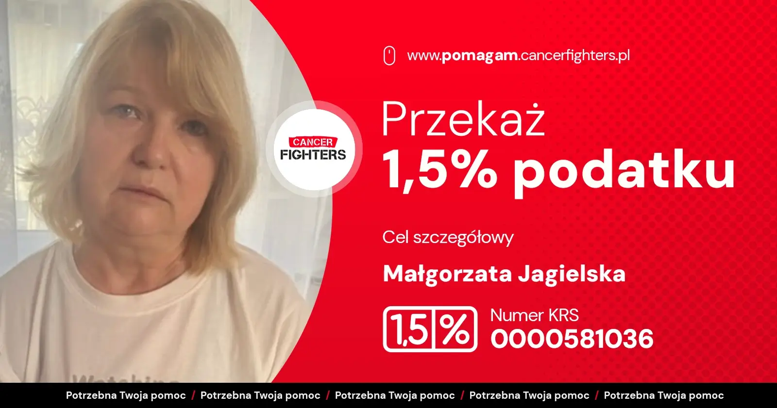 Na liście organizacji wyszukaj Fundacja Cancer Fighters lub 0000581036