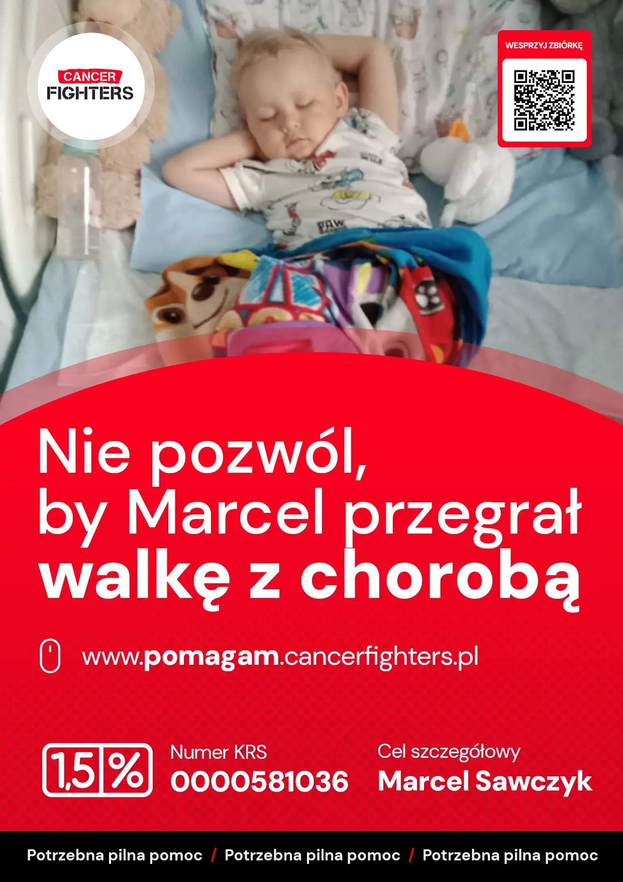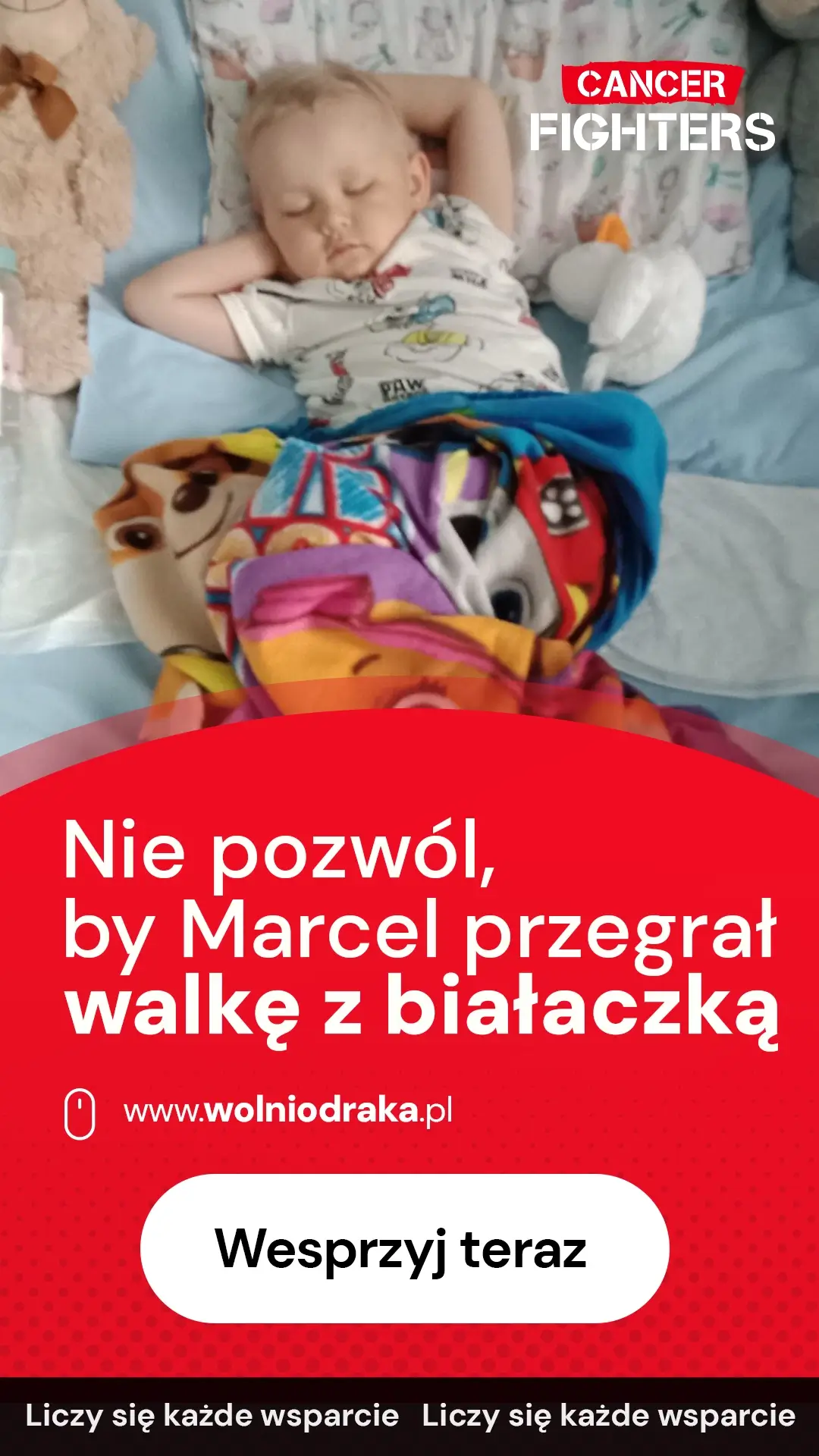 Chemioterapia okazała się wyjątkowo ciężka. Marcel cierpi z powodu bólu, podrażnionych śluzówek, braku apetytu i silnych wahań nastroju wywołanych sterydami. Choroba rozdzieliła rodzinę między dom w Kotlinie Kłodzkiej a szpital we Wrocławiu – tata zrezygnował z pracy, by być przy synku, mama dba o dom i próbuje utrzymać codzienność. Leczenie komplikowały zakażenia, COVID i bardzo niska odporność, ale mimo wszystko rodzina nie traci nadziei. Każdy spokojny sen, uśmiech Marcela i najmniejsza poprawa są dla nich dowodem, że ta walka ma sens i że kiedyś wrócą do domu razem.