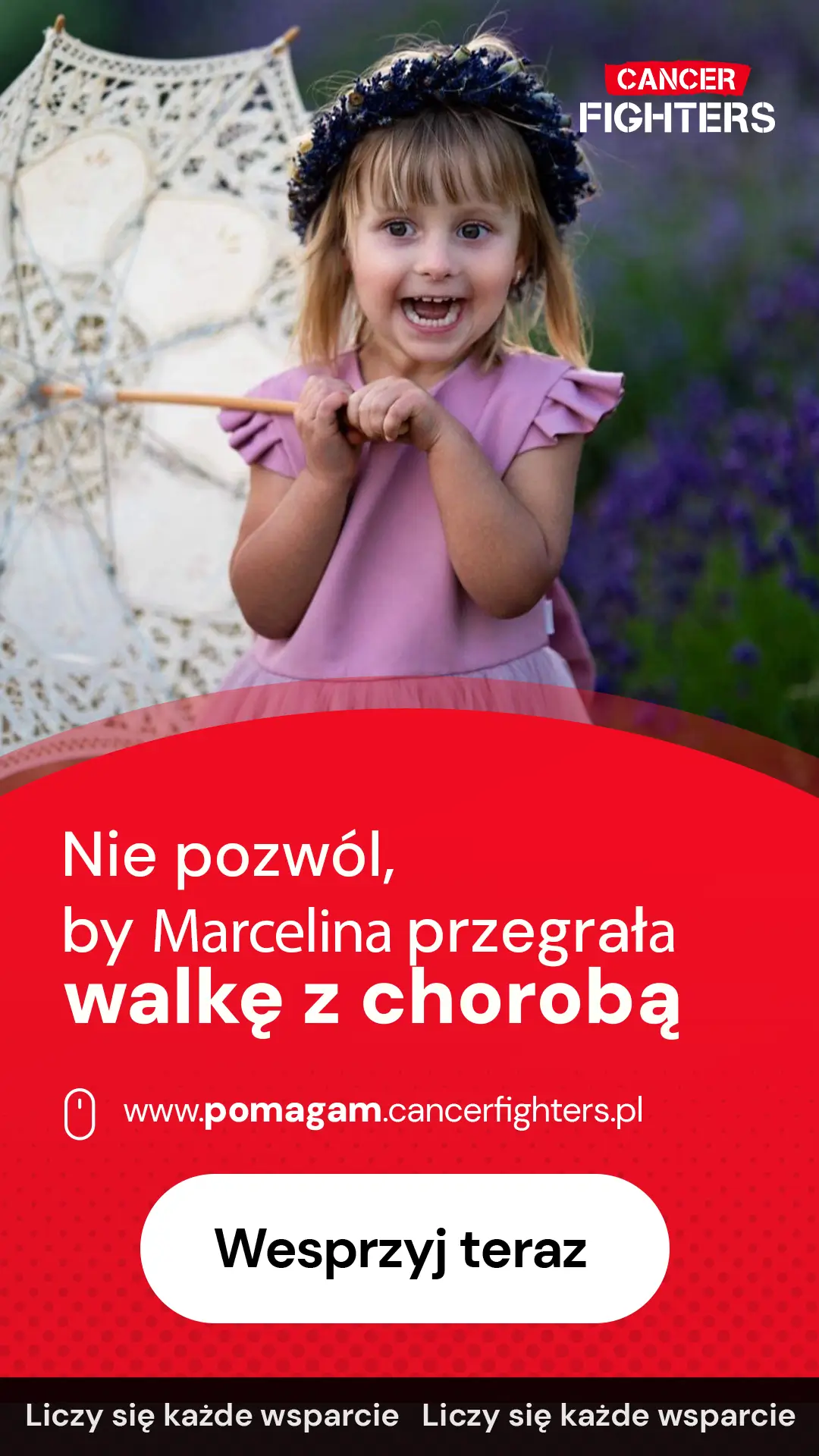 Po niemal pół roku diagnostyki padła druzgocąca diagnoza: dyskeratoza wrodzona typu 3, rzadka, nieuleczalna choroba genetyczna, która stopniowo wyniszcza organizm i prowadzi do niewydolności kluczowych narządów. Przeszczep komórek macierzystych, do którego zgodną dawczynią jest starsza siostra Marceliny, nie daje szansy na wyleczenie, a jedynie na przedłużenie życia. Dla rodziny to ogromna próba, pełna strachu i bólu, ale też codziennej walki o normalność. Uczą się nowej rzeczywistości, cieszą każdą wspólną chwilą i trzymają się nadziei, że rozwój medycyny przyniesie kiedyś ratunek. Dziś proszą przede wszystkim o siłę, by iść dalej, nie poddać się i pozostać razem jak najdłużej.