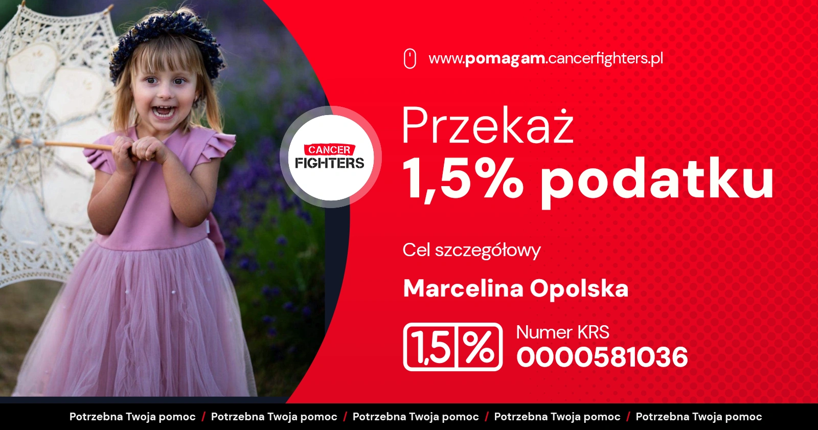 Na liście organizacji wyszukaj Fundacja Cancer Fighters lub 0000581036