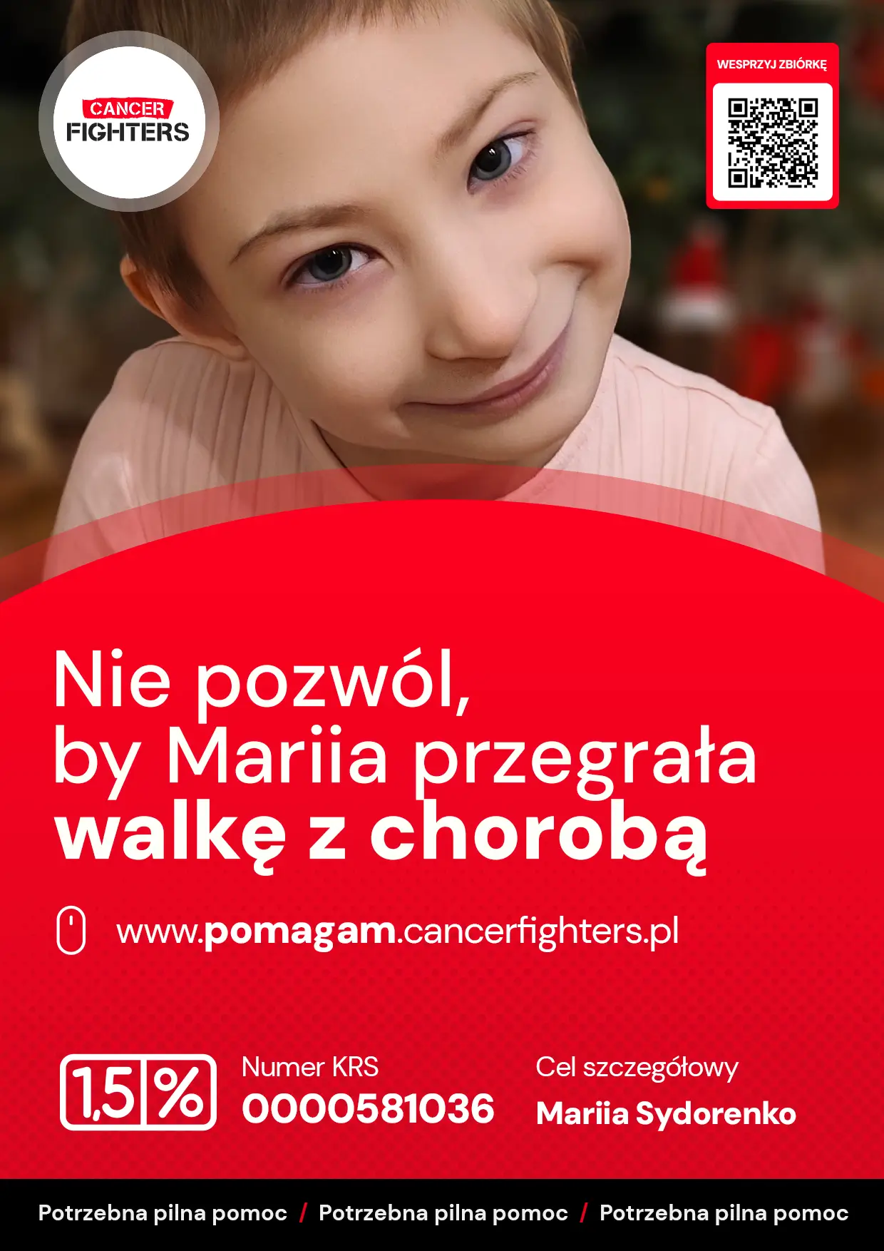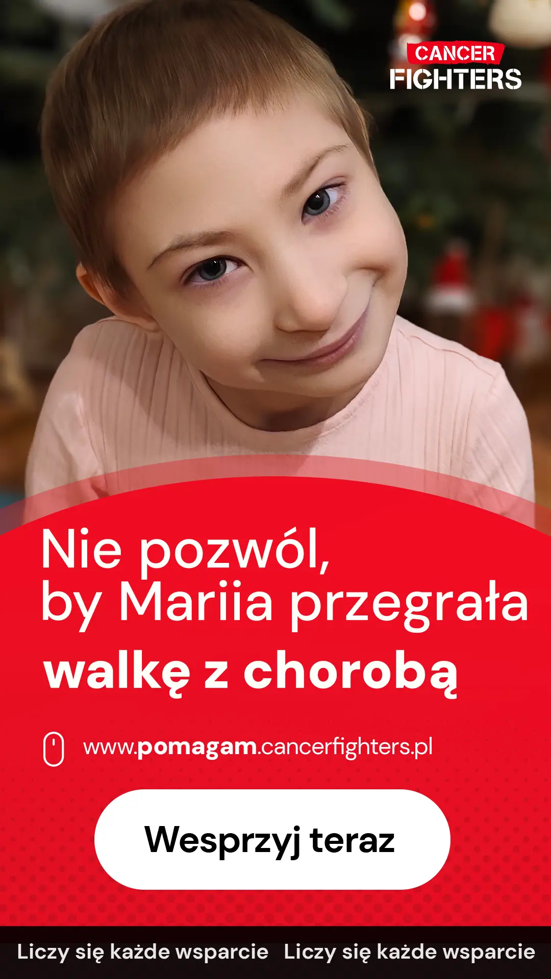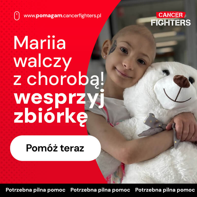 Dalsza diagnostyka i kolejne biopsje doprowadziły do ostatecznego rozpoznania – chłoniak B-komórkowy. Od lutego Marysia niemal nie opuszcza Przylądka Nadziei, jest po czterech cyklach chemioterapii i obecnie znajduje się w remisji. Znalazł się zgodny dawca, a przeszczep szpiku zaplanowano na 20 sierpnia. Pięcioipółletnie dziecko, ważące zaledwie 12,5 kilograma, przeszło już miesiące karmienia sondą i leczenia, które wyczerpało jej drobny organizm dodatkowo obciążony zespołem Nijmegena. Mimo wszystko Marysia idzie dalej – zbyt lekka, by dźwigać taki ciężar, a jednak wystarczająco silna, by nieść go bez lęku.