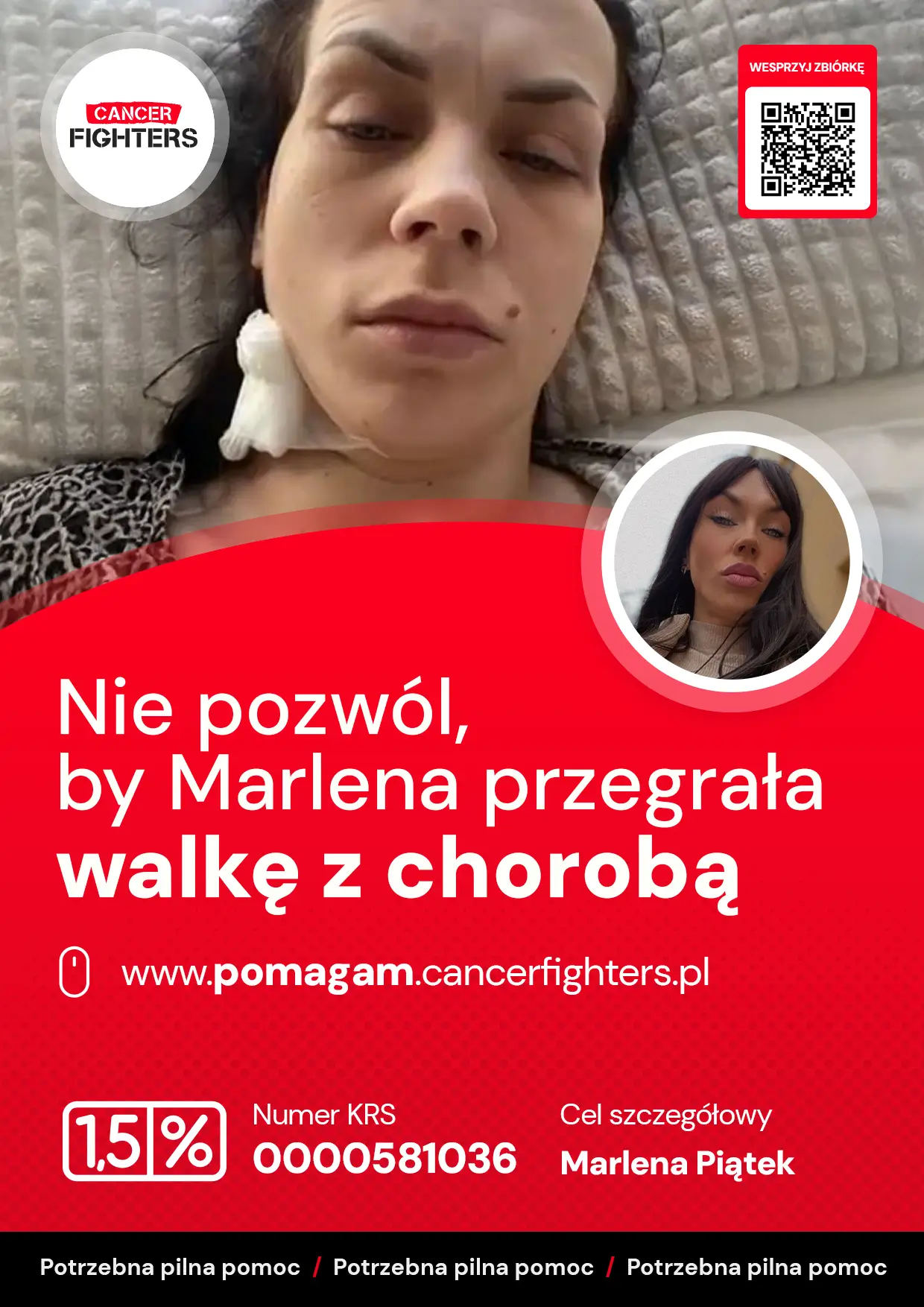 Największym ciężarem dla Marleny nie jest jednak tylko choroba, ale myśl o jej dzieciach — czteroletniej Kamili i maleńkiej Kai. W czasie leczenia opiekę nad nimi przejmie tata, który już teraz mierzy się z ogromną odpowiedzialnością, wspierając jednocześnie swojego ojca po amputacji nogi. Rodzina w ostatnich latach doświadczyła wielu trudnych chwil — dwa lata temu Marlena straciła mamę z powodu choroby nowotworowej. Mimo to zawsze była osobą, która dawała innym wsparcie — jako opiekun medyczny pomagała osobom starszym i z niepełnosprawnościami, a w makijażu odnajdywała pasję i przestrzeń do podkreślania piękna innych kobiet. Dziś to ona potrzebuje pomocy. Leczenie będzie długie i wymagające, a każdy gest wsparcia pozwala tej rodzinie przejść przez ten czas z większym spokojem i nadzieją na powrót do zdrowia.
