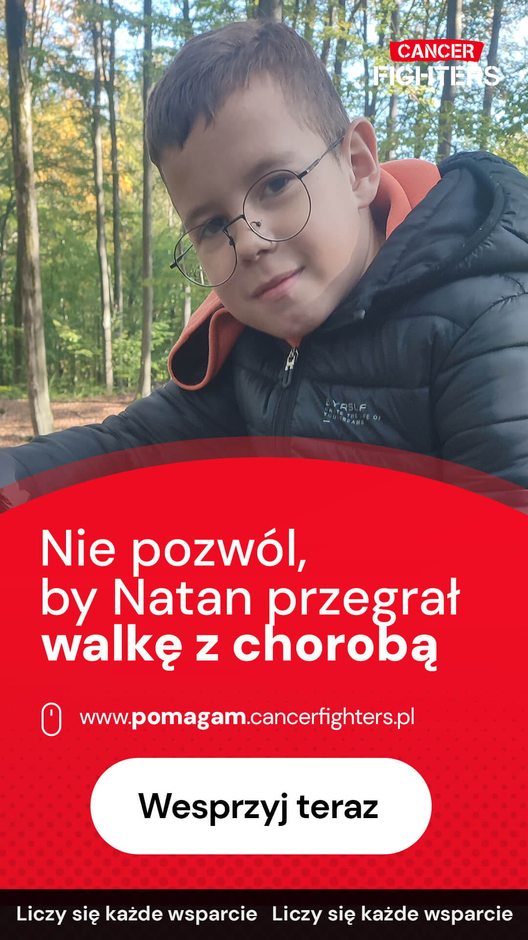 Najpierw pojawiło się długotrwałe zmęczenie i ból nóg, z którym dziecięce ciało nie potrafiło sobie poradzić. Potem wyniki badań zaczęły gwałtownie się pogarszać, aż w marcowy poranek w szpitalu w Olsztynie padła diagnoza, która zmieniła wszystko – ostra białaczka limfoblastyczna z rearanżacją. Kilka dni później, 17 marca, wszczepiono Natanowi port naczyniowy Broviac i rozpoczęto chemioterapię według protokołu AIEOP-BFM ALL POLAND 2017. Choć jego stan jest obecnie określany jako dobry i bez przerzutów, leczenie wciąż trwa, a przed nim kolejne etapy terapii realizowane w Wojewódzkim Dziecięcym Szpitalu Specjalistycznym w Olsztynie.