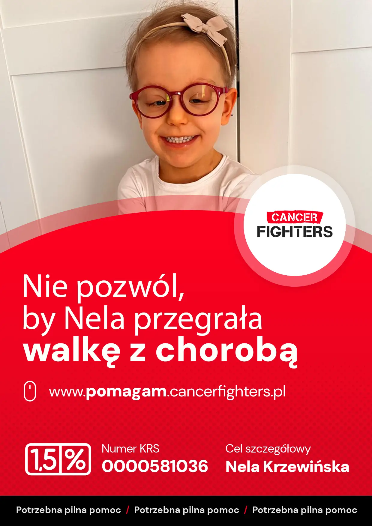 U osób ze zdiagnozowanym NF1, jednym z objawów jest częste powstawanie nowotworów. Niestety podczas kontrolnego rezonansu w 2024 u Neli wykryto zmiany na nerwach wzrokowych, pniu mózgu oraz móżdżku. Od tego momentu Nela była konsultowana u najlepszych specjalistów w Polsce i na świecie. Zdecydowaliśmy się przenieść leczenie do Centrum Zdrowia Dziecka które zapewniało opiekę lekarzy posiadających największe doświadczenie w tym zakresie. Na początku lekarze zgodnie stwierdzili, że należy obserwować guzy. Niestety w październiku 2025 zapadła decyzja, że musi zostać poddana rocznej chemioterapii. Przez pierwsze 3 miesiące musiała przyjmować chemię raz w tygodniu.