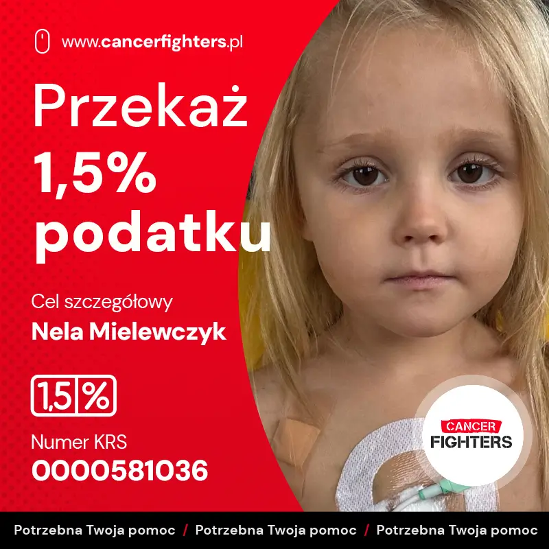 Nela, jeszcze niedawno pełna energii i dziecięcego śmiechu, zaczęła nagle słabnąć. Coraz częściej zatrzymywała się w zabawie, szybko się męczyła, prosiła, by wziąć ją na ręce. Pojawiła się senność, bladość ust i nawracające bóle brzucha, choć nie było gorączki ani utraty apetytu. Zaniepokojeni rodzice zdecydowali się na badania krwi. Telefon z laboratorium, z krótkim komunikatem o dramatycznie złych wynikach i konieczności natychmiastowego wyjazdu do szpitala, w jednej chwili zmienił ich życie. Pośpiech, policyjna eskorta i pierwsze podejrzenie białaczki były początkiem drogi, która zakończyła się jednoznaczną diagnozą postawioną po biopsji szpiku w Gdańsku – ostra białaczka limfoblastyczna ALL typu B.