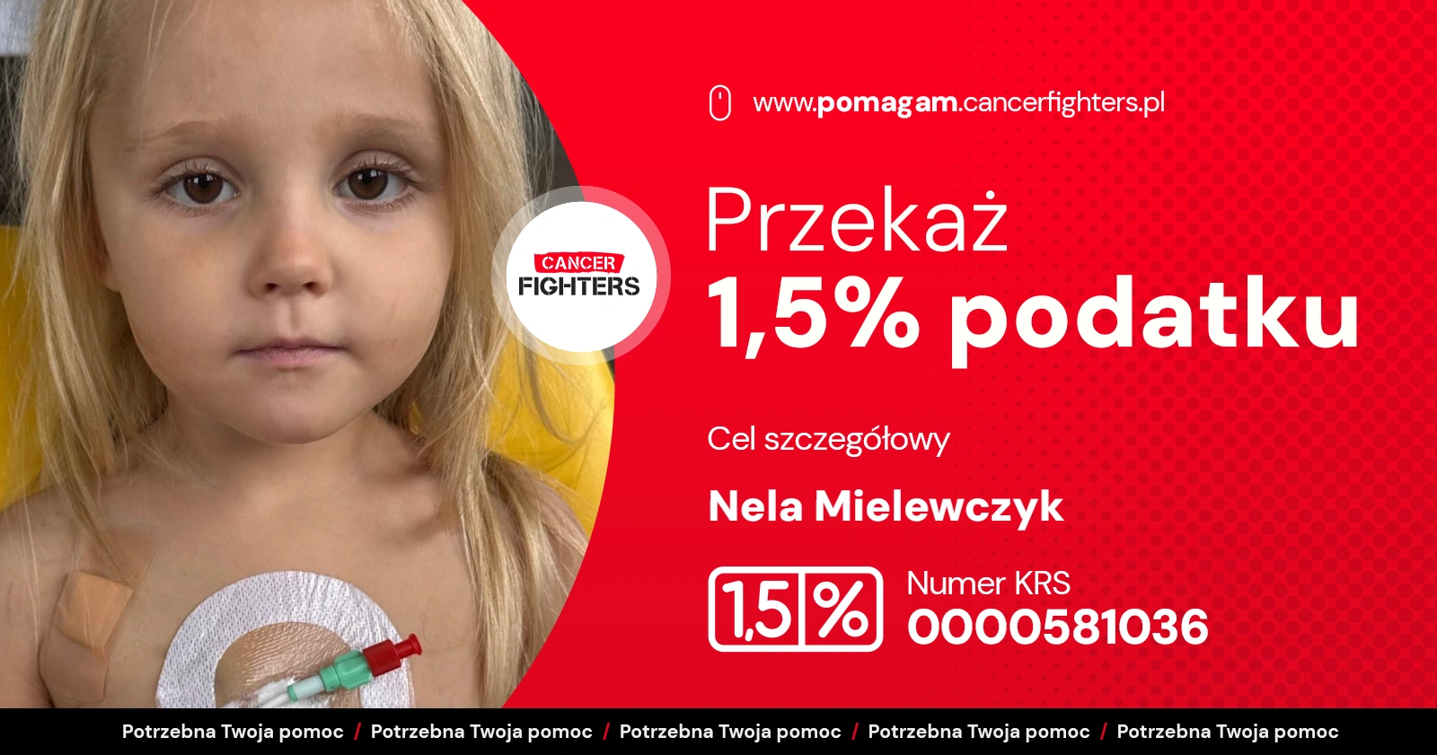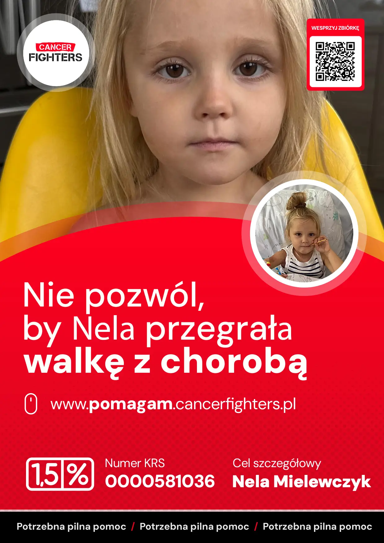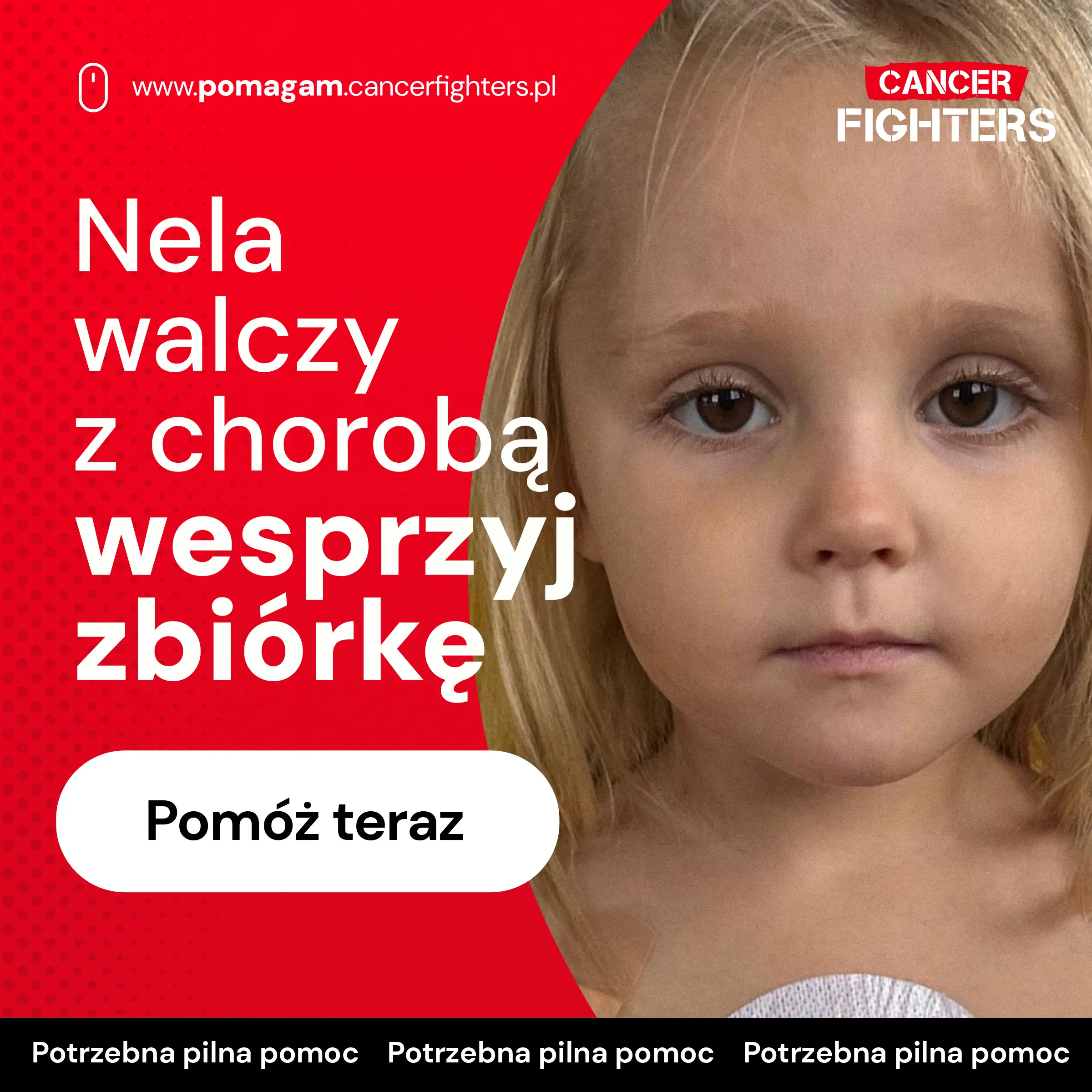 Leczenie rozpoczęto natychmiast według intensywnego protokołu, obejmującego liczne zabiegi w znieczuleniu, punkcje, implantację cewnika oraz bardzo silną chemioterapię. Terapia potrwa co najmniej dwa lata, z czego pierwsze miesiące Nela spędzi niemal wyłącznie w szpitalu. Przy jej łóżku czuwa mama, podczas gdy tata dzieli czas między pracę, dom i opiekę nad rodzeństwem – Igorem i Nadią, którzy zostali rozdzieleni z siostrą i codziennie tęsknią za wspólnym dzieciństwem. Zebrane środki pomogą rodzinie udźwignąć koszty leczenia, dojazdów, leków i specjalnej diety, a w przyszłości także rehabilitacji, by Nela po tej długiej walce mogła odzyskać siły i wrócić do świata zabawy i uśmiechu.