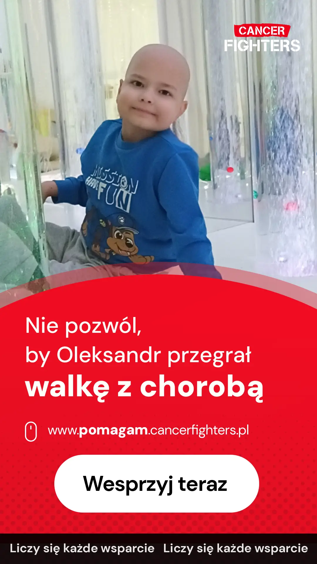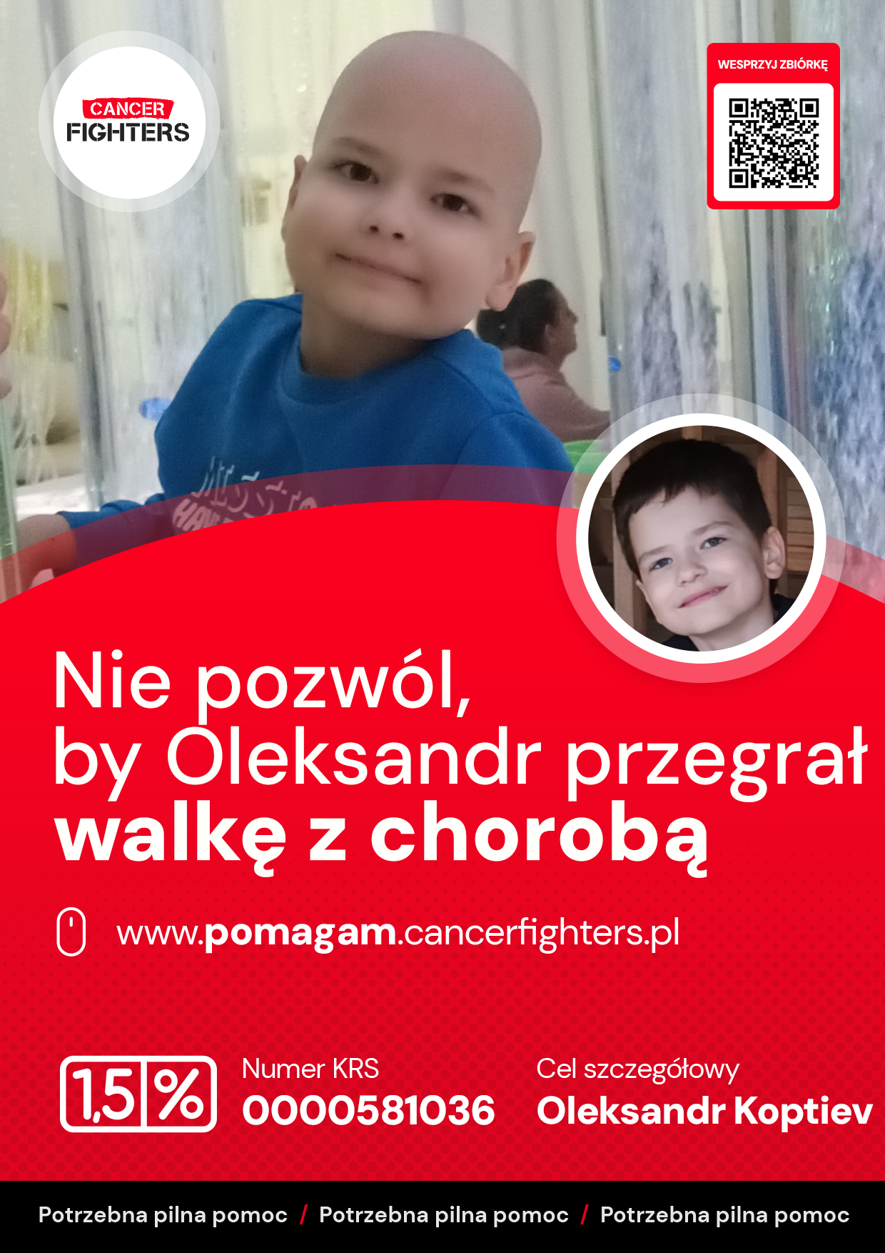 Rozpoczęło się intensywne leczenie – chemioterapia, badania kontrolne i przygotowania do kolejnych etapów terapii. W trakcie konieczna była także operacja usunięcia wyrostka robaczkowego, obarczona dużym ryzykiem ze względu na ciężki stan zdrowia chłopca. Przed Oleksandrem i jego rodziną wciąż wiele miesięcy leczenia, rehabilitacji i walki o powrót do zdrowia. Zebrane środki zostaną przeznaczone na terapię, leki, rehabilitację, transport i codzienne potrzeby, które stały się częścią tej trudnej drogi. Każde wsparcie to realna pomoc w ratowaniu zatrzymanego dzieciństwa.