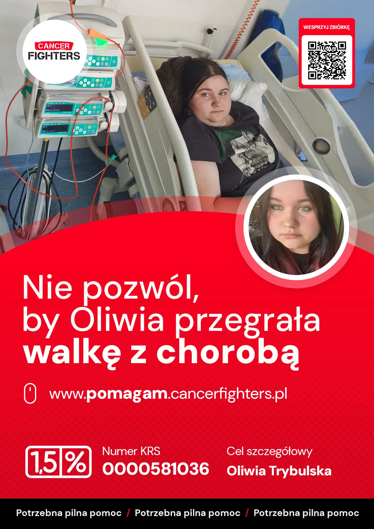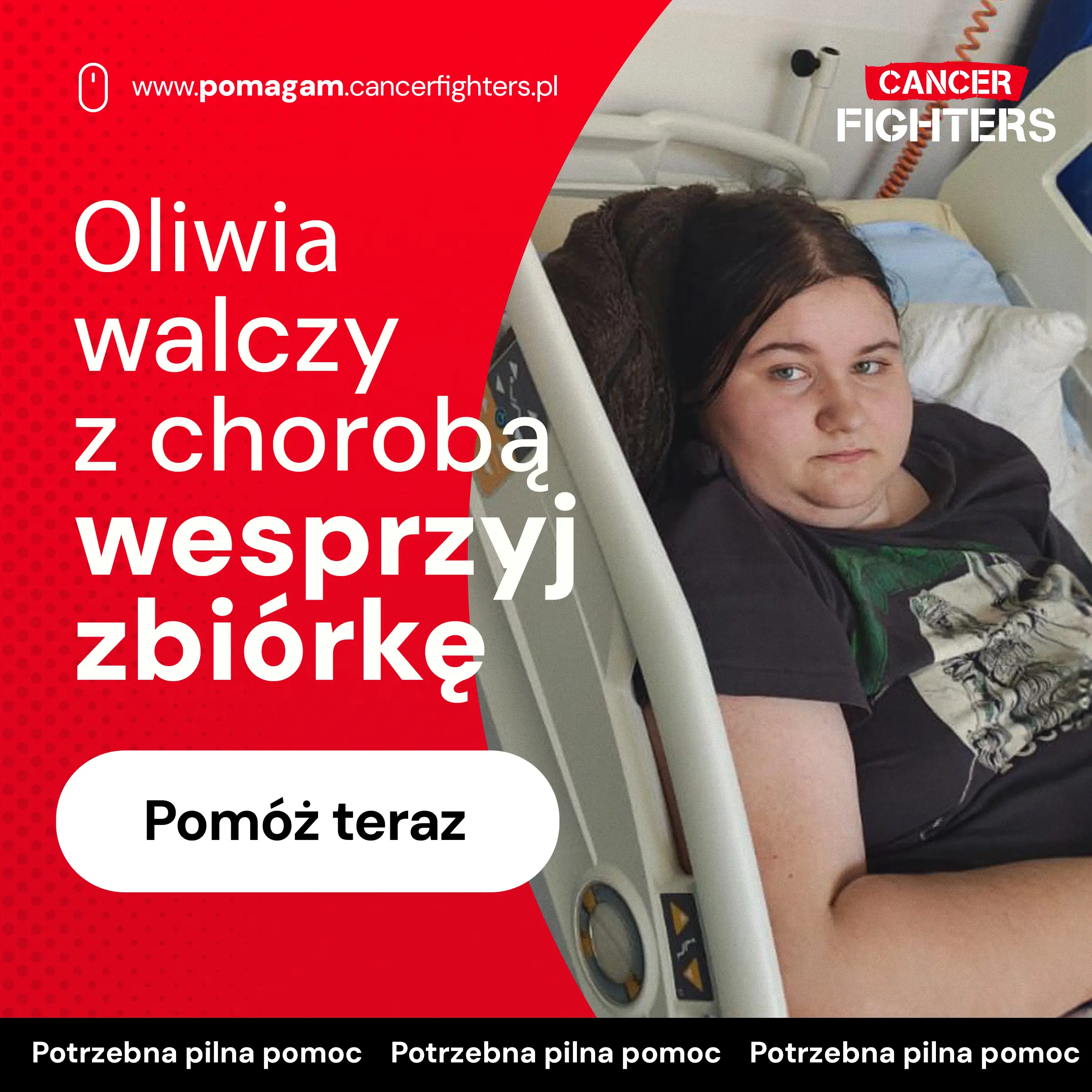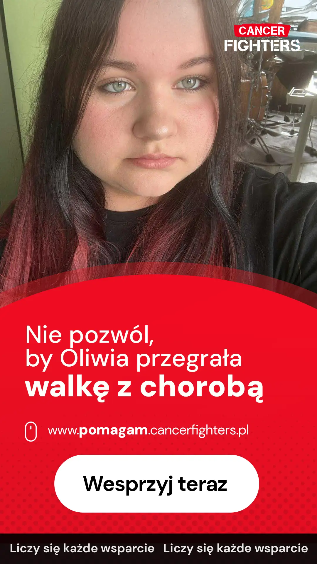 Najtrudniejsza jest jednak nie tylko choroba, ale także samotność i rozłąka z bliskimi. Szpital oddalony o 100 kilometrów od domu oznacza ograniczony kontakt z rodziną i przyjaciółmi. Mama zrezygnowała z pracy, by być przy córce każdego dnia, a tata przejął obowiązki związane z utrzymaniem domu. Starsze rodzeństwo wspiera Oliwię na odległość — rozmowami, wiadomościami i obecnością, która mimo dystansu wciąż jest odczuwalna. Jeszcze niedawno to Oliwia pomagała innym jako wolontariuszka, była wsparciem dla osób potrzebujących i znajdowała radość w drobnych rzeczach — w rysowaniu, w czasie spędzanym z rodziną i ukochanymi psami. Dziś to ona potrzebuje wsparcia. Leczenie onkologiczne to ogromne wyzwanie również finansowe — częste dojazdy, koszty terapii i codzienne funkcjonowanie stają się dużym obciążeniem. Dlatego każda pomoc daje tej rodzinie większe poczucie bezpieczeństwa i pozwala skupić się na tym, co najważniejsze — zdrowiu Oliwii i jej powrocie do normalnego życia.