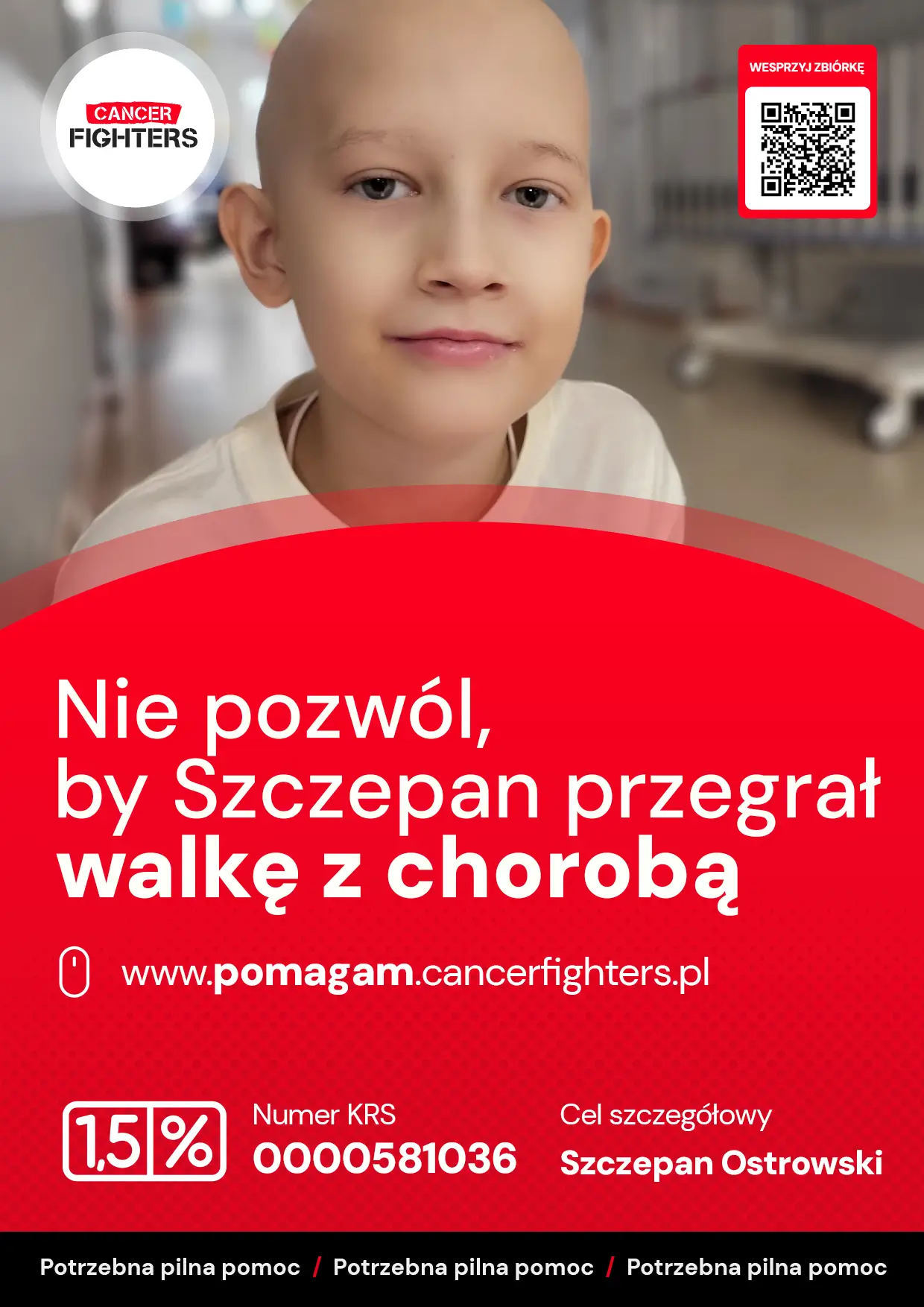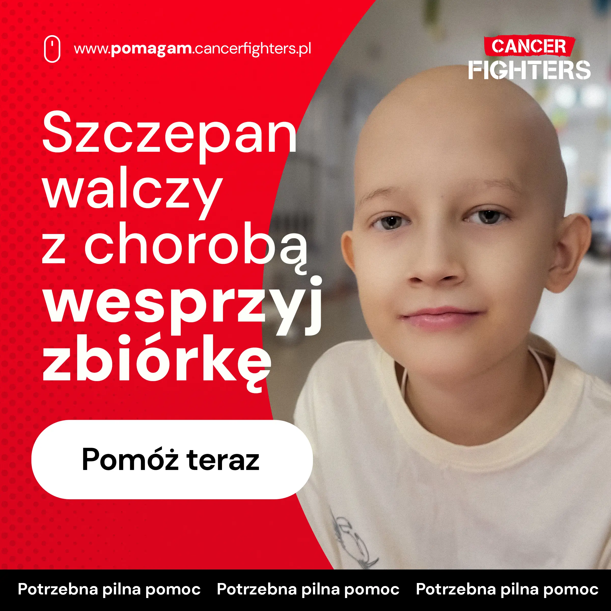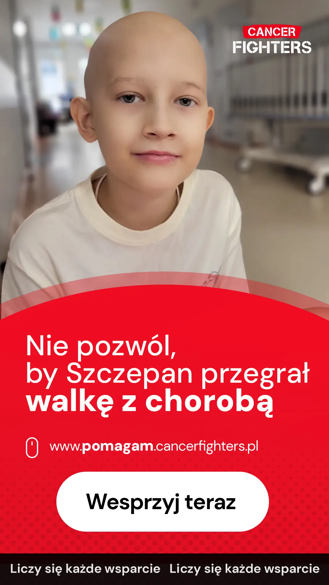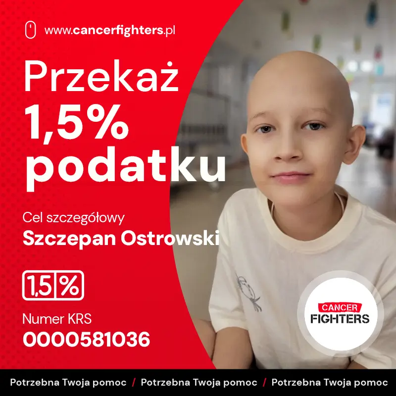Choć Szczepan walczy z niezwykłą odwagą, leczenie oznacza długie tygodnie spędzone w szpitalu, ogromne zmęczenie i całkowite podporządkowanie życia chorobie. Jedno z rodziców musiało zrezygnować z pracy, by być przy nim każdego dnia, a koszty leczenia, dojazdów, rehabilitacji i codziennej opieki narastają z każdym tygodniem. Zbiórka ma dać tej rodzinie realne wsparcie i pozwolić Szczepanowi kontynuować leczenie z możliwie najlepszą jakością życia — tak, by w tej nierównej walce nie został sam.