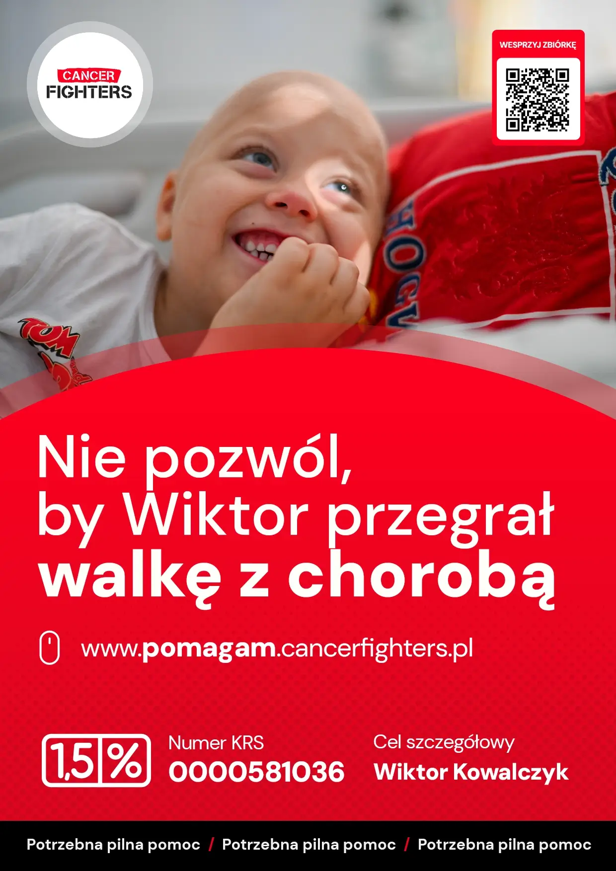 Wiktor miał zaledwie półtora roku, gdy po raz pierwszy usłyszał diagnozę – guz Wilmsa prawej nerki. Operacja i usunięcie chorej nerki przyniosły ulgę całej rodzinie, a zakończone leczenie pozwoliło wrócić do domu, do radości i nadziei na normalne dzieciństwo. Niestety w maju 2023 roku los znów okazał się bezlitosny. Wiktor ponownie trafił do „Przylądka Nadziei” we Wrocławiu, tym razem z podejrzeniem chłoniaka, które szybko potwierdziła diagnoza. Rozpoczęło się kolejne intensywne leczenie onkologiczne – chemioterapia, sterydy, liczne badania i pobyty w szpitalach we Wrocławiu i Warszawie, a dla jego mamy czas zatrzymał się całkowicie.