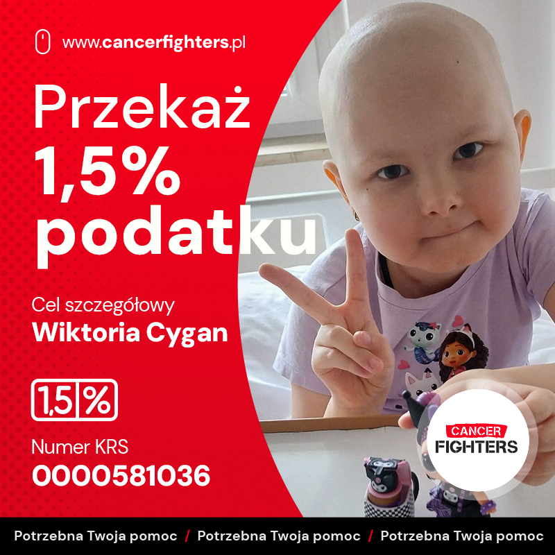 Do marca 2022 roku życie Wiktorii było wypełnione zwyczajną młodzieńczą radością – szkołą, przyjaciółmi i planami na przyszłość. Wszystko przerwała diagnoza, która w jednej chwili odebrała beztroskę: ostra białaczka limfoblastyczna. Rozpoczął się długi i wyczerpujący maraton leczenia – chemioterapia, transfuzje, punkcje, sterydoterapia i rehabilitacja stały się codziennością. Miesiące spędzone w szpitalu zmęczyły jej ciało i psychikę, ale Wiktoria walczyła dzielnie. Z czasem pojawiła się poprawa, a wraz z nią ostrożna nadzieja, że najgorsze być może jest już za nią.