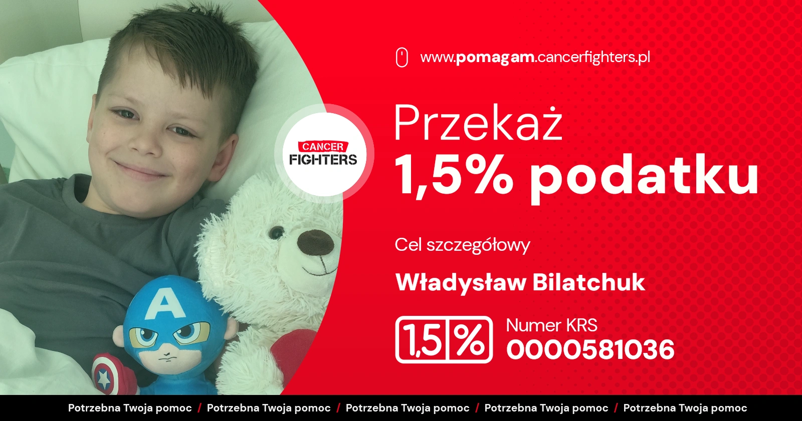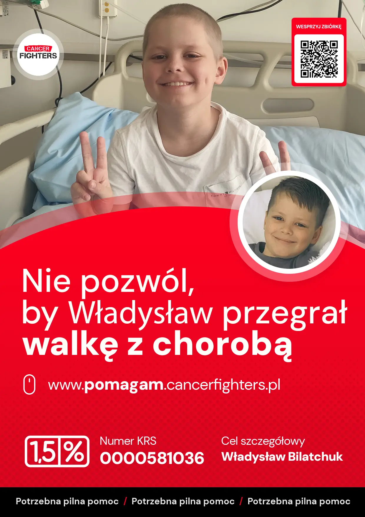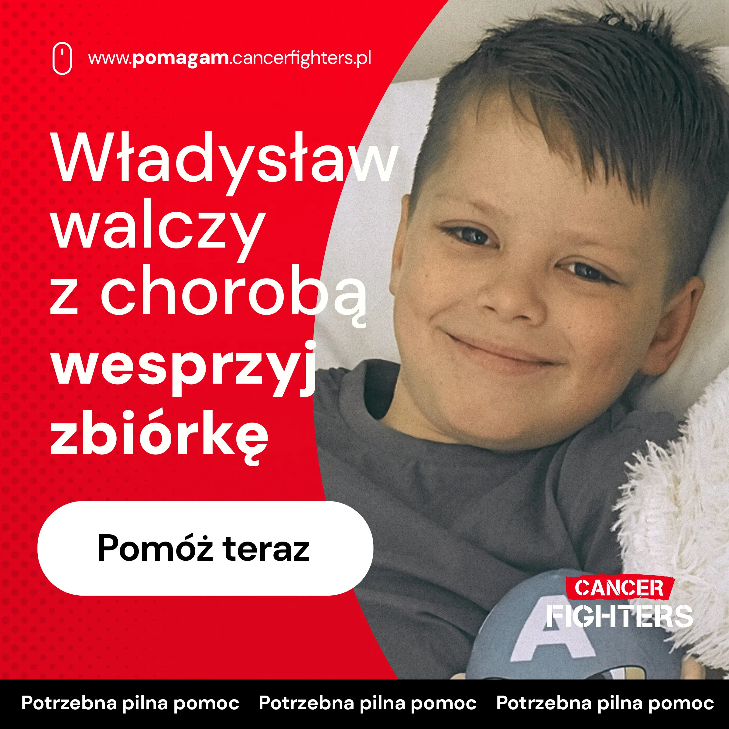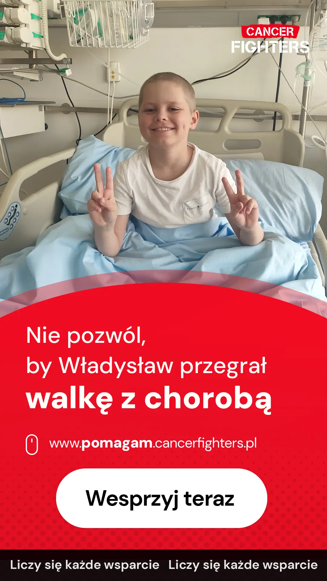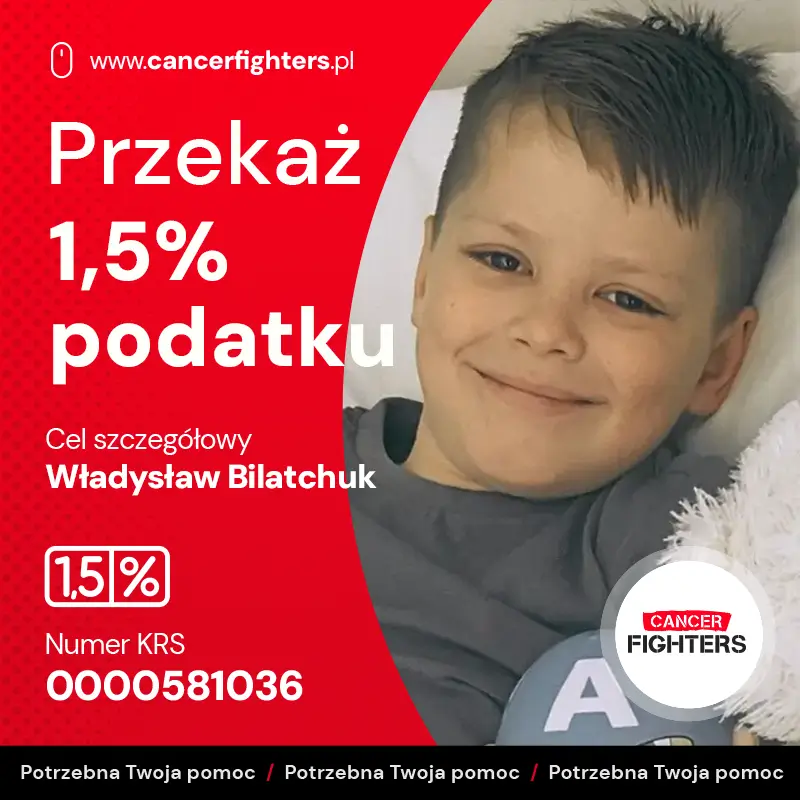 Przez trzy lata bezskutecznie poszukiwano niespokrewnionego dawcy szpiku. Dopiero w lipcu 2025 roku szansę na życie podarował Władziowi tata, oddając mu swój szpik w ramach przeszczepu haploidentycznego. Niestety pojawiły się poważne powikłania – częściowy odrzut przeszczepu i konieczność zastosowania silnej immunosupresji, która doprowadziła do gwałtownego spadku parametrów krwi. Dziś lekarze czekają na kluczowe wyniki badań, które wyznaczą dalszą drogę leczenia. Mimo ogromnych trudności Władzio pozostaje pogodnym, wrażliwym chłopcem, marzącym o powrocie do domu, szkoły i zwyczajnego dzieciństwa u boku ukochanego brata. Każde wsparcie daje jego rodzinie siłę, by dalej walczyć o zdrowie najmłodszego bohatera.