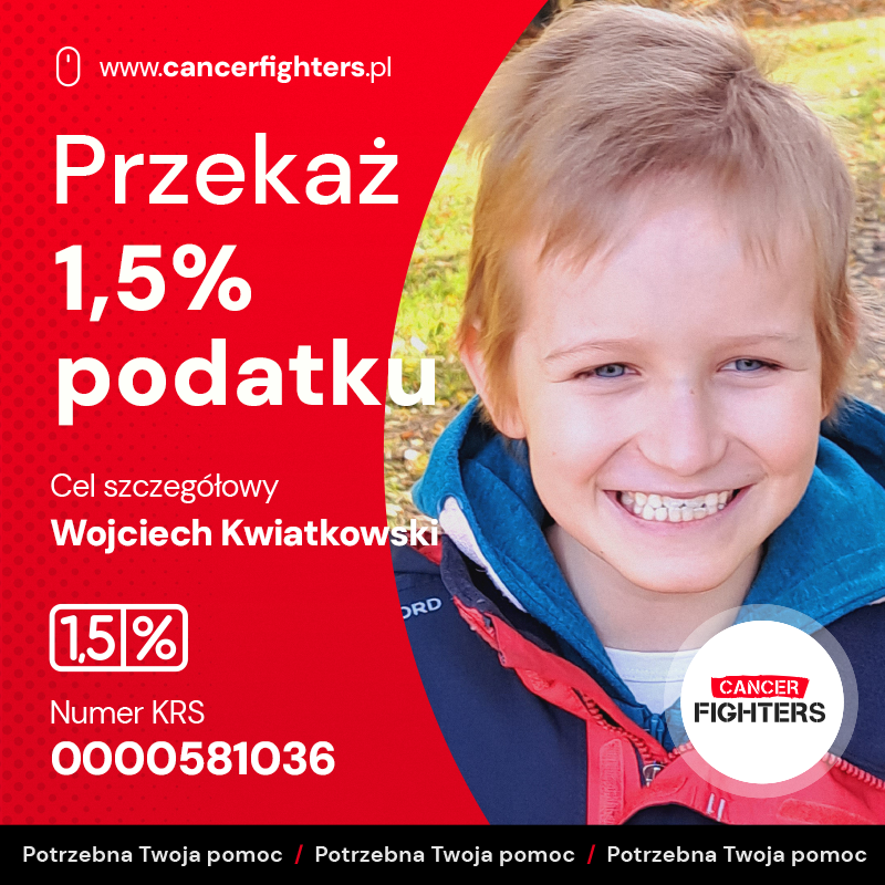 Mimo tych wyzwań leczenie przebiegło pomyślnie, a rehabilitacja przynosi efekty. Wojtek z każdym dniem odzyskuje siły i wraca do pełni sprawności, nie tracąc swojego optymizmu i radości życia.