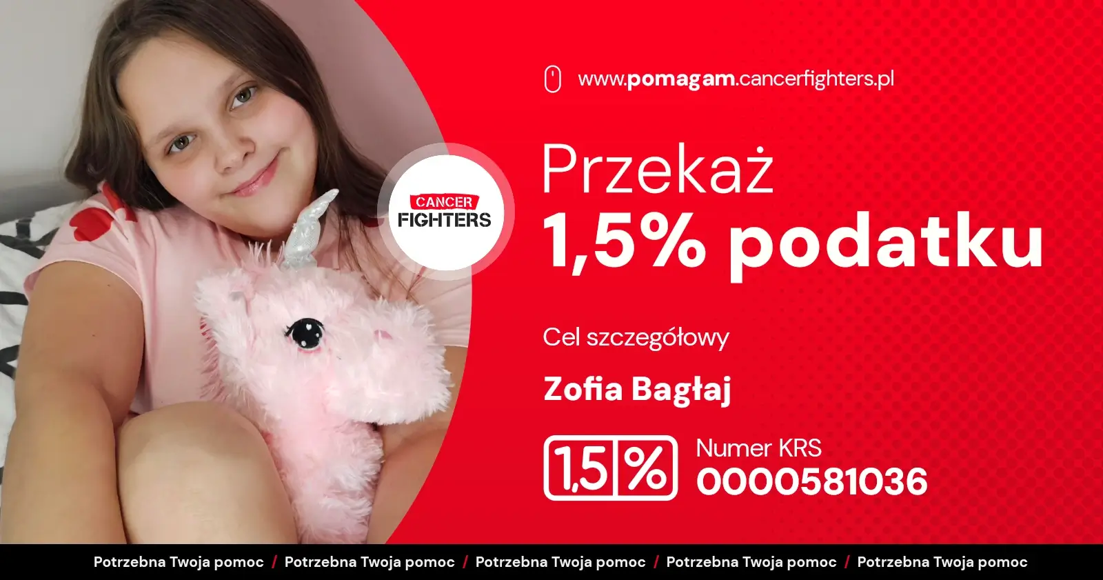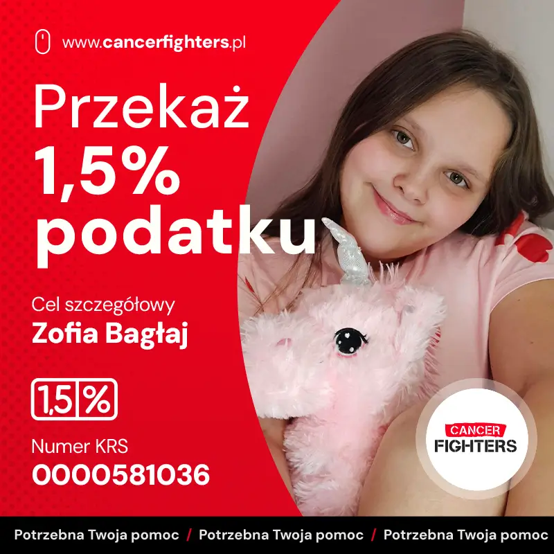 Na liście organizacji wyszukaj Fundacja Cancer Fighters lub 0000581036