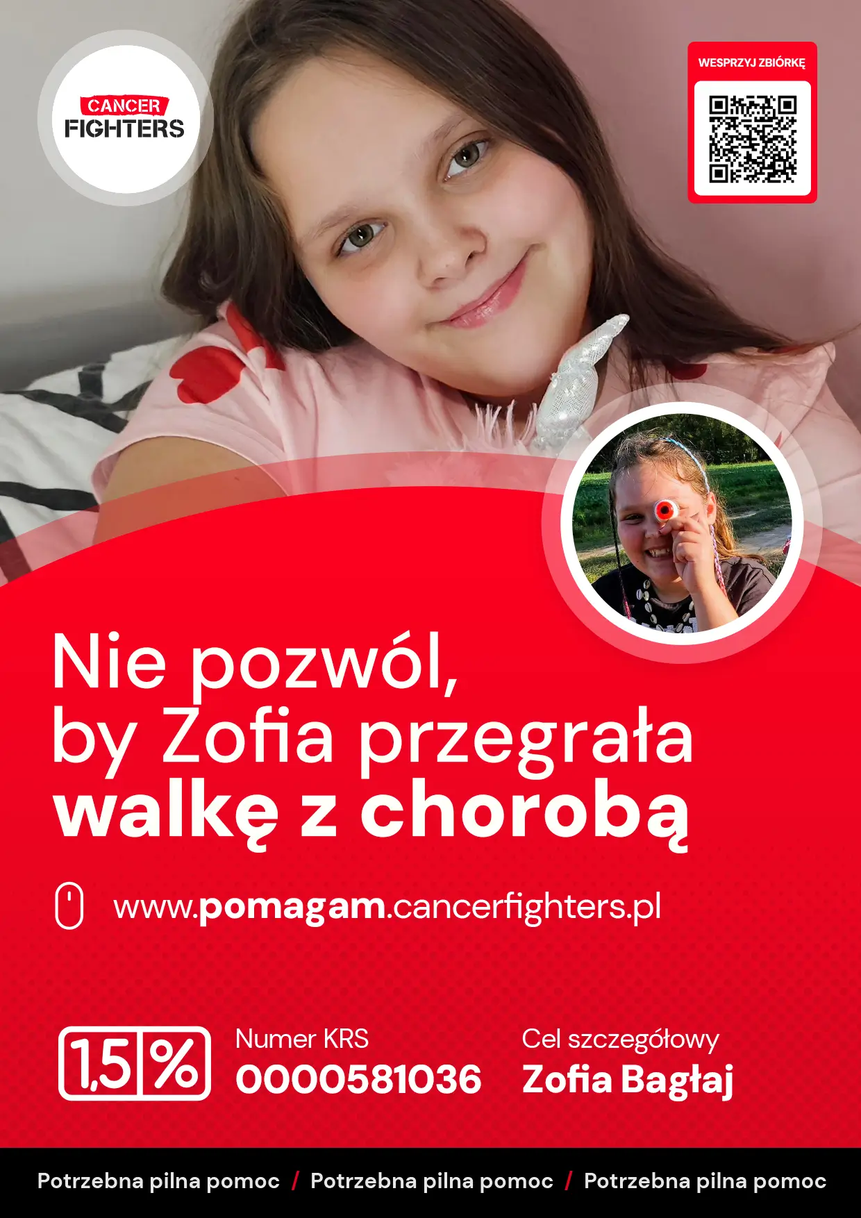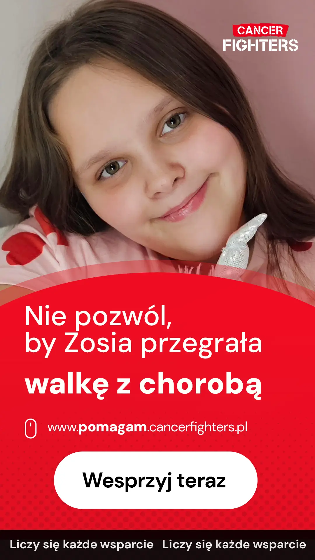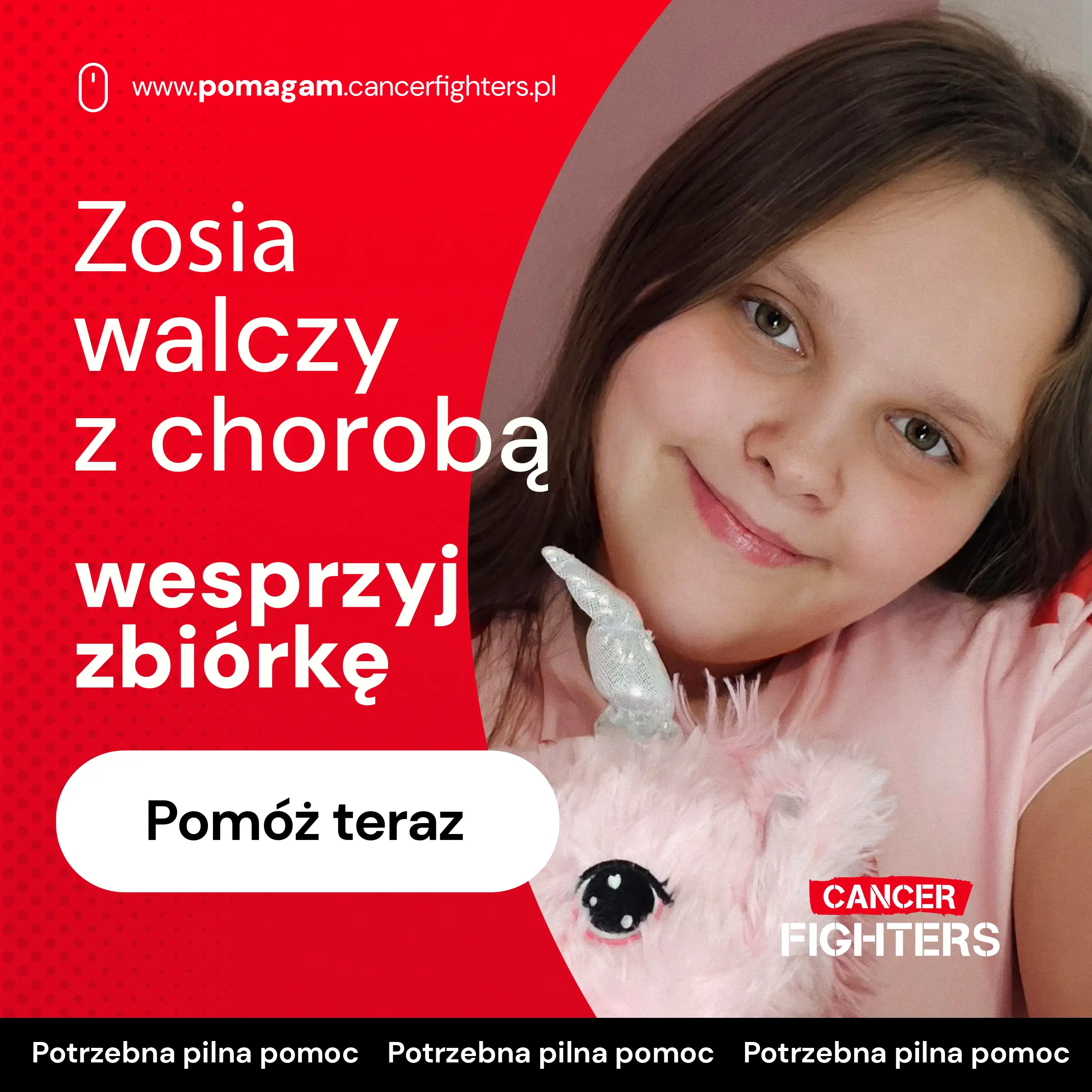 Choroba zmieniła życie całej rodziny, która mobilizuje wszystkie siły, by wspierać Zosię w przygotowaniach do przeszczepu zaplanowanego na luty 2026 roku. Rodzice i rodzeństwo przeorganizowali swoją codzienność, by móc być blisko niej, towarzyszyć w leczeniu i chronić choć część jej dotychczasowego, pełnego pasji świata — tańca, śpiewu, malowania i mody. Zosia mierzy się nie tylko z rzadką mutacją genetyczną, ale także z niedoczynnością tarczycy i insulinoopornością, co dodatkowo obciąża jej organizm. Przed nią długie miesiące terapii, a rodzina prosi o wsparcie, by mogła przejść ten czas z nadzieją i siłą, których potrzebują, by ocalić blask dzieciństwa swojej córki.