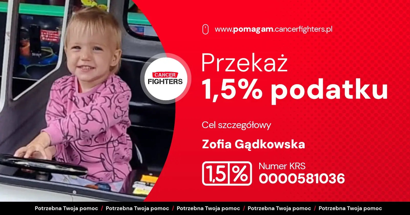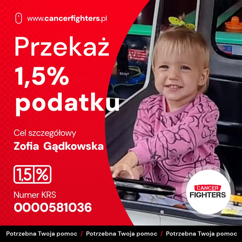 Na liście organizacji wyszukaj Fundacja Cancer Fighters lub 0000581036