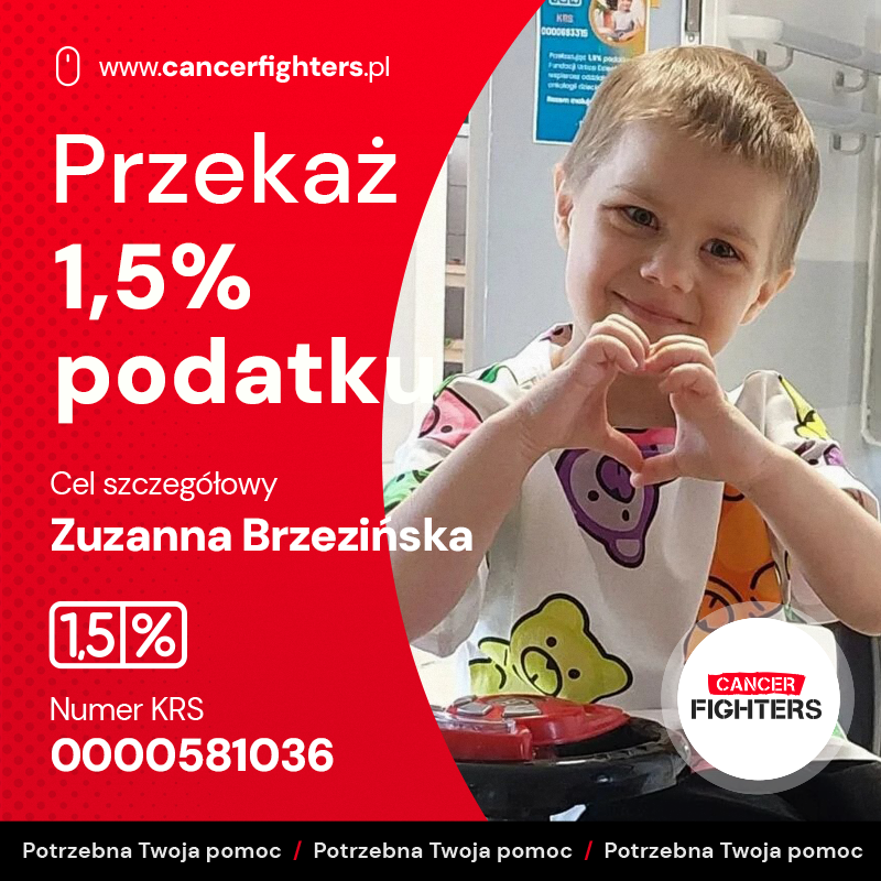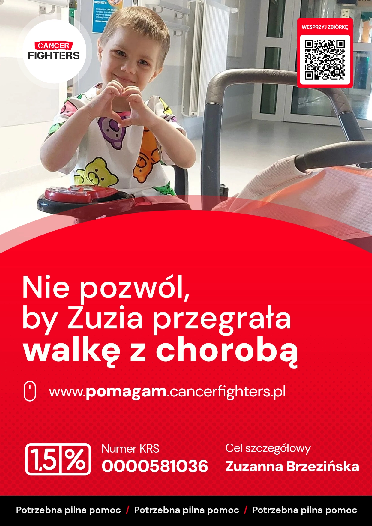 Zuzia zmaga się z białaczką limfoblastyczną od kwietnia. Za sobą ma już dwa bloki chemioterapii, a przed nią kolejne. Przed chorobą uwielbiała chodzić do przedszkola, bawić się w piaskownicy, układać puzzle oraz spędzać czas z koleżankami i kolegami. Niestety, życie Zuzi i jej rodziny całkowicie się zmieniło. Rodzice czuwają przy niej, wspierając ją w walce z chorobą, a koszty leczenia są ogromne, zwłaszcza dojazdy do szpitala oddalonego o 100 km od domu.