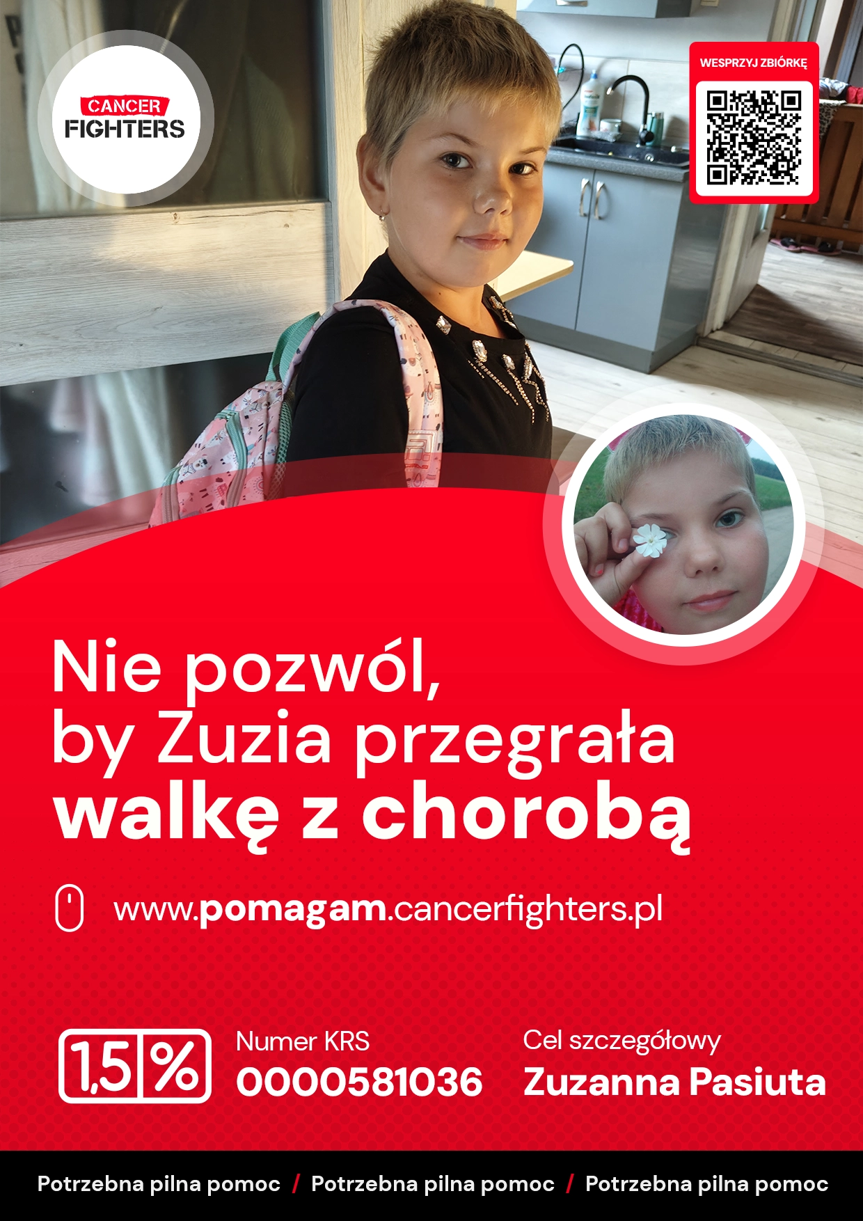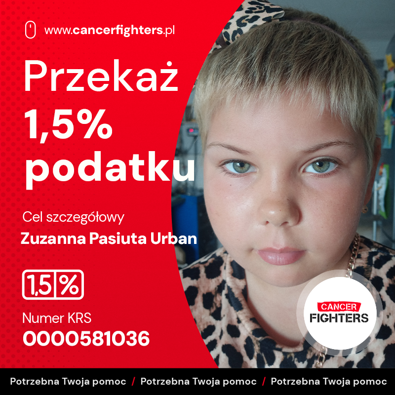 Zuzia dzielnie walczy o powrót do zdrowia i przeszła na ostatni etap leczenia – podtrzymujący. Obecnie przyjmuje chemię w tabletkach i mogła wrócić do domu. Czuje się dobrze, zarówno fizycznie, jak i psychicznie, a powrót do szkoły sprawił jej ogromną radość.